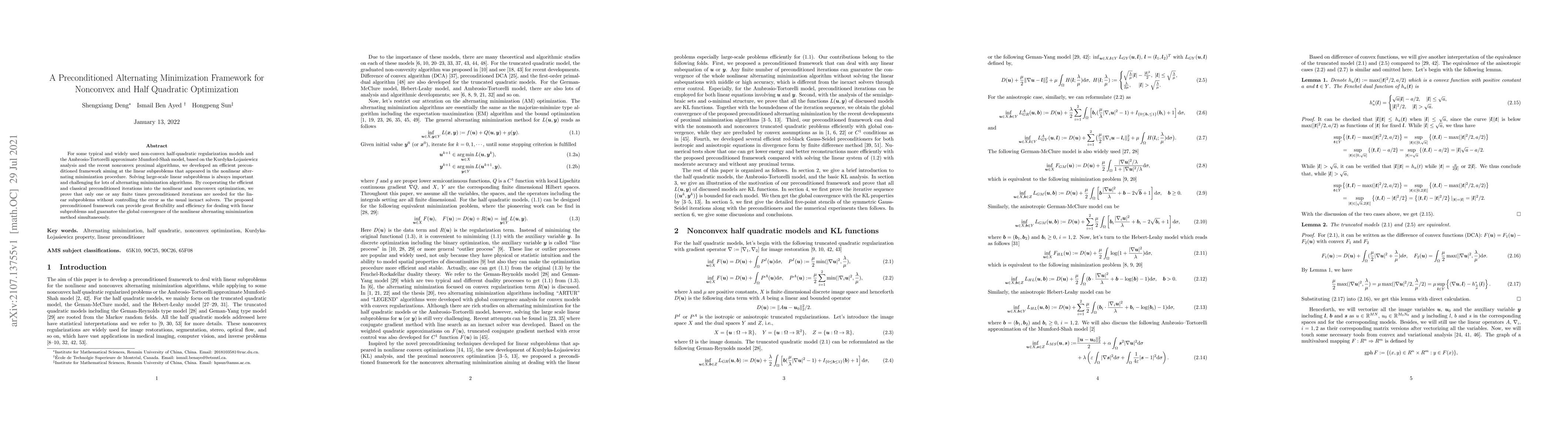 This paper introduces a preconditioned alternating minimization framework for solving nonconvex half-quadratic optimization problems, particularly for the Ambrosio-Tortorelli model. The proposed method efficiently handles linear subproblems without requiring error control, ensuring global convergence and flexibility.