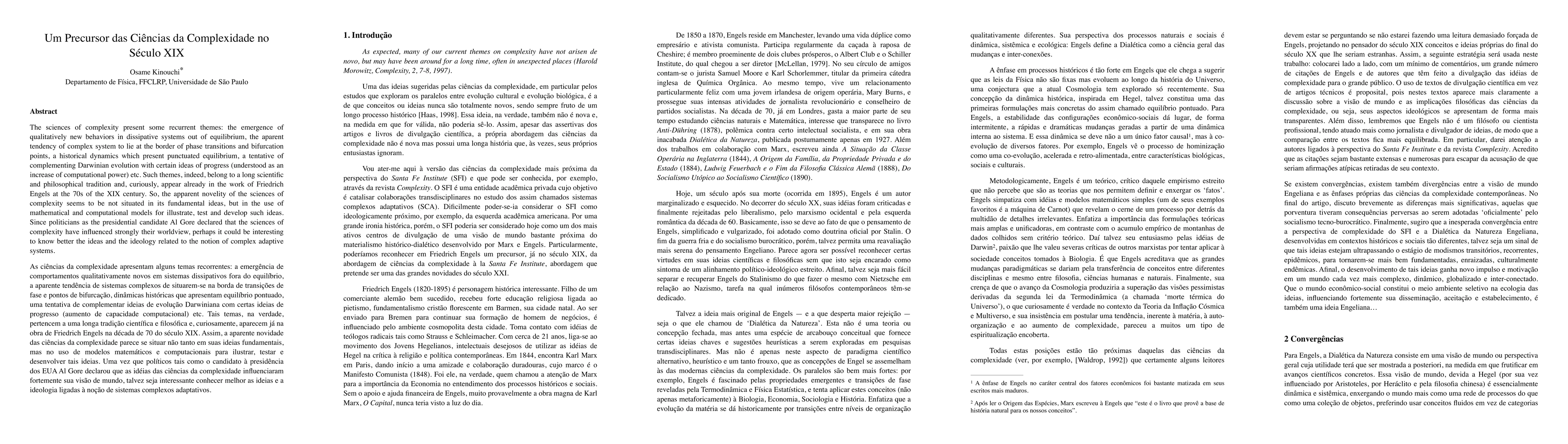 The paper reveals that foundational concepts of the sciences of complexity, such as emergent behaviors and system dynamics, were present in Frederick Engels' 19th-century writings. It suggests that the perceived novelty of complexity sciences lies in the application of mathematical and computational models, rather than in the fundamental ideas themselves. The study implies an examination of the historical and ideological context of complex adaptive systems, given their influence on contemporary worldviews.