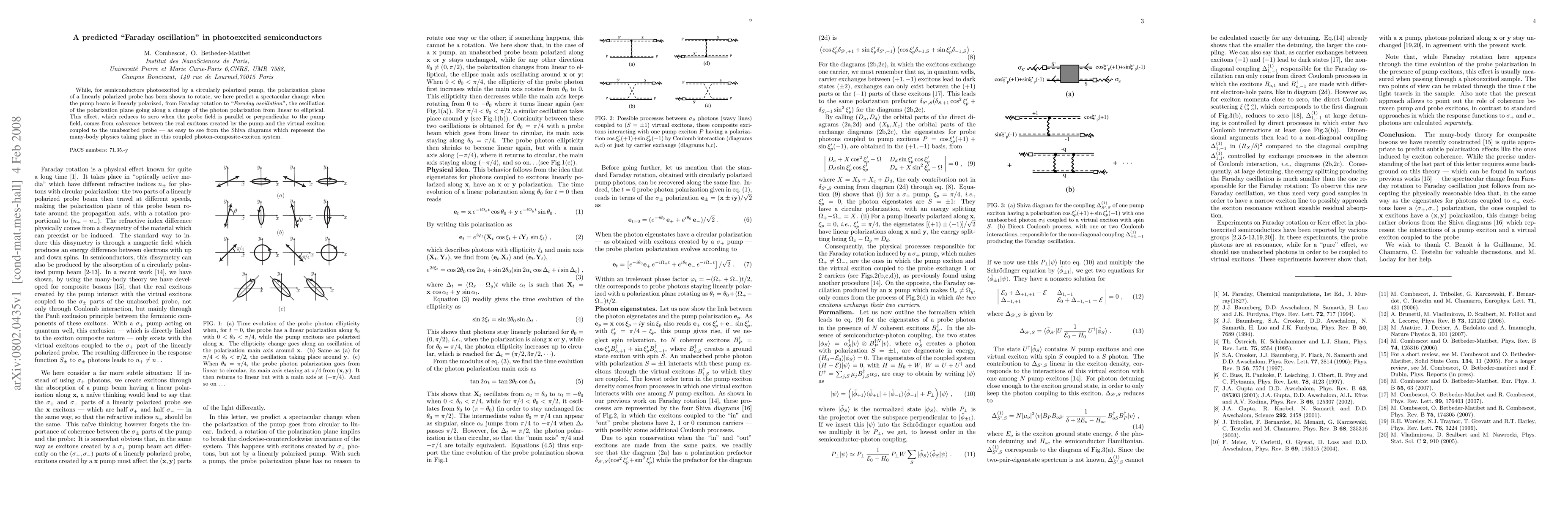 While, for semiconductors photoexcited by a circularly polarized pump, the polarization plane of a linearly polarized probe has been shown to rotate, we here predict a spectacular change when the pump beam is linearly polarized, from Faraday rotation to Faraday oscillation, the oscillation of the polarization plane going along a change of the photon polarization from linear to elliptical. This effect, which reduces to zero when the probe field is parallel or perpendicular to the pump field, comes from coherence between the real excitons created by the pump and the virtual exciton coupled to the unabsorbed probe, as easy to see from the Shiva diagrams which represent the many-body physics taking place in this coupled photon-composite-exciton system.