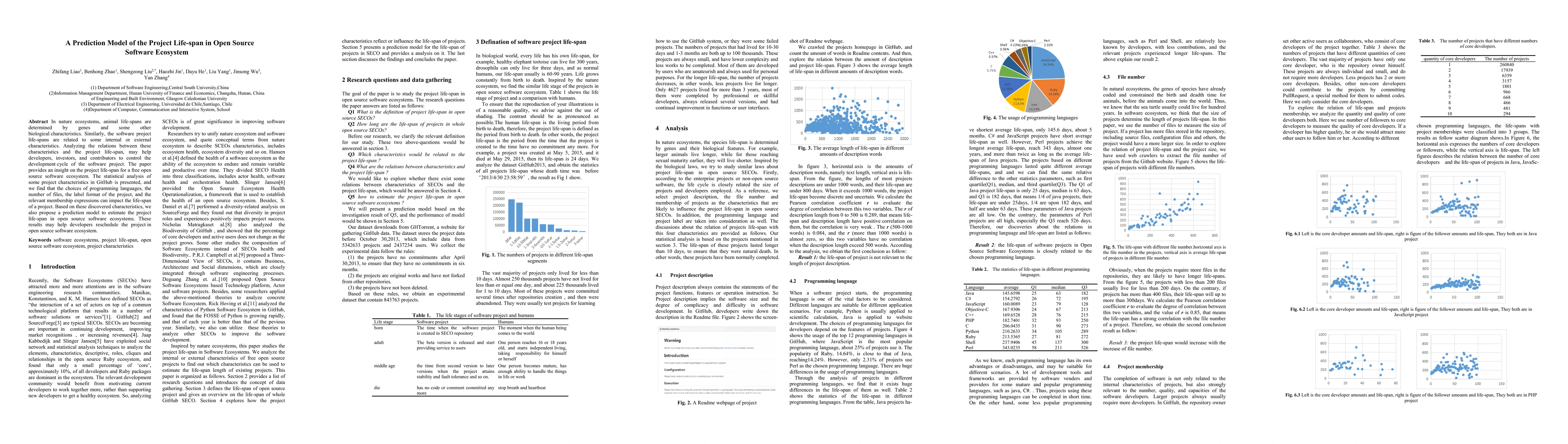 A prediction model was presented to estimate the life-span of software projects in open source software ecosystems.