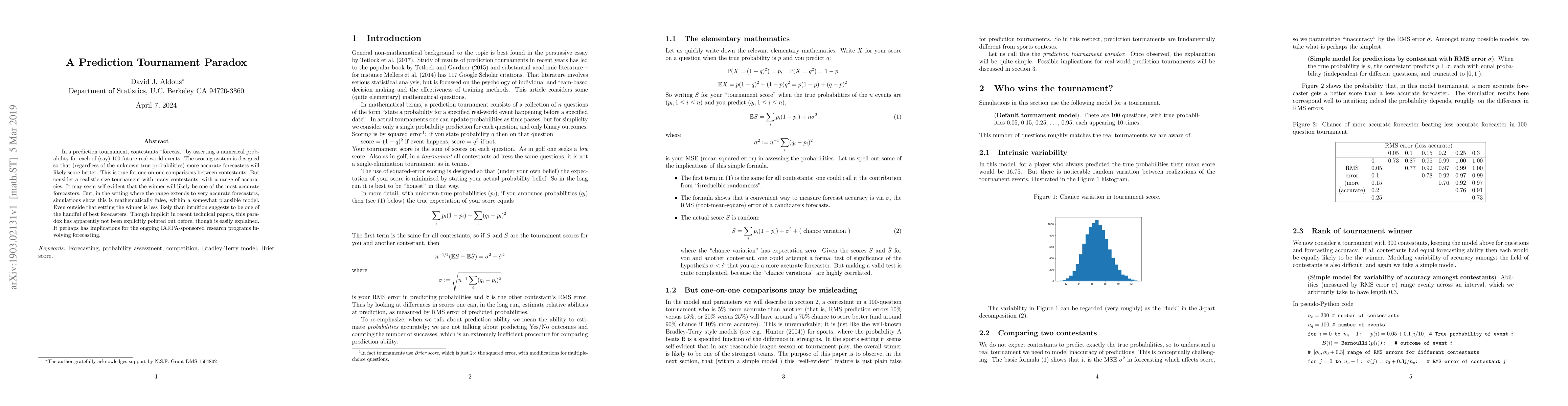 This paper reveals a paradox in prediction tournaments where the winner is less likely to be among the most accurate forecasters, contrary to intuition. This counterintuitive result has implications for forecasting competitions, including those sponsored by IARPA.