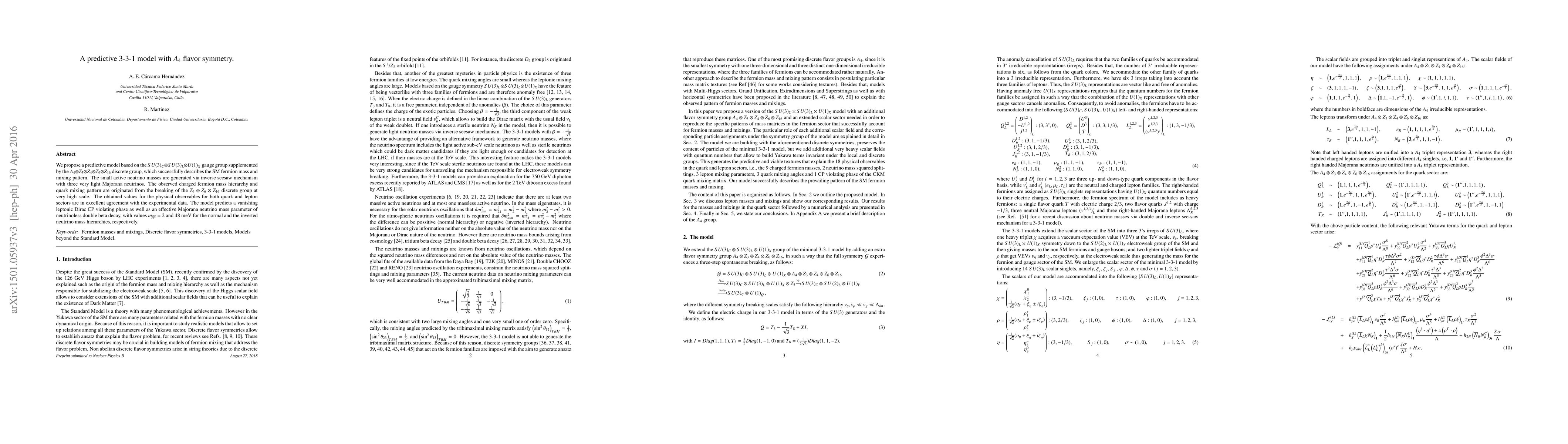 This paper proposes a predictive model based on a specific gauge and discrete symmetry group, successfully describing the Standard Model fermion mass and mixing pattern. It generates small active neutrino masses via inverse seesaw mechanism and predicts a vanishing leptonic Dirac CP violating phase. The model forecasts neutrinoless double beta decay effective Majorana mass parameters as 2 meV (normal hierarchy) and 48 meV (inverted hierarchy).
