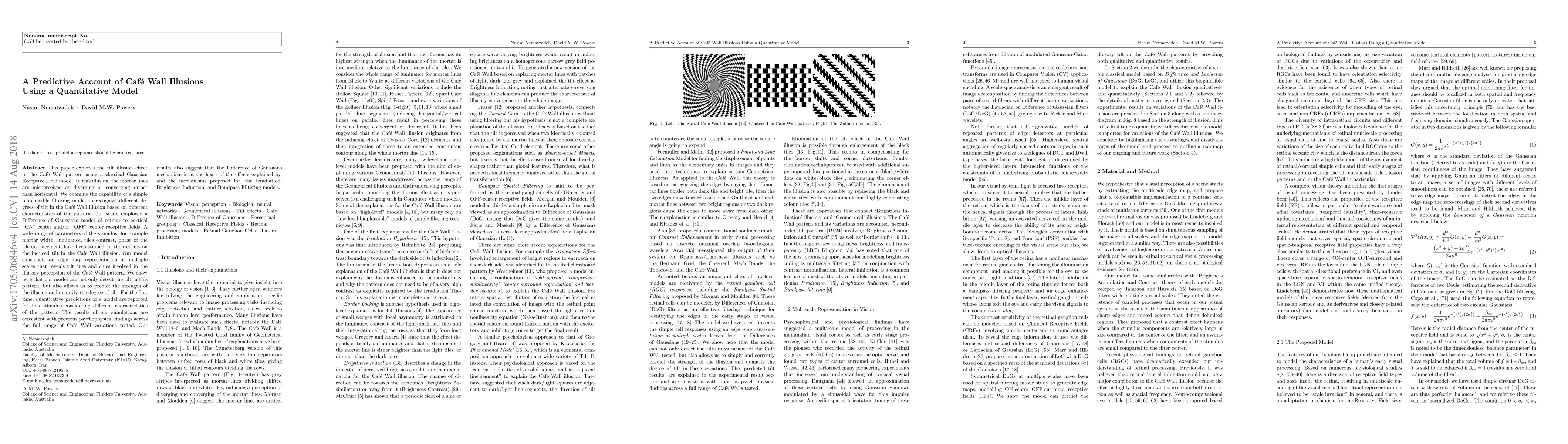 This paper uses a Gaussian Receptive Field model to predict and quantify the tilt illusion in Cafe Wall patterns, showing that the Difference of Gaussians mechanism can predict the illusion's strength and degree, aligning with previous psychophysical findings.
