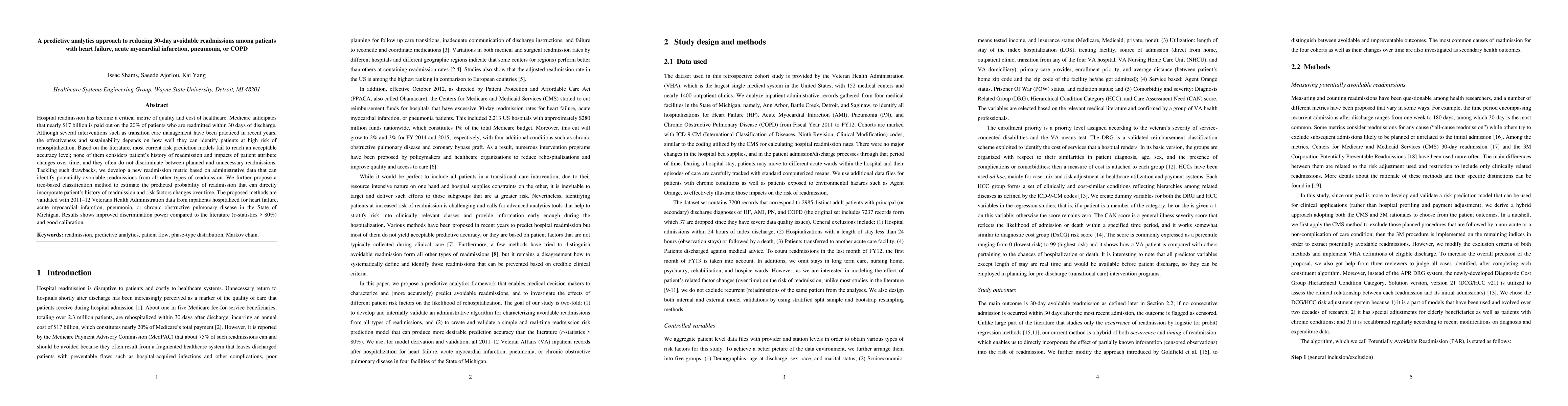 This paper develops a predictive analytics approach to identify avoidable hospital readmissions using administrative data and a tree-based classification method, which considers patient history and attribute changes over time. The proposed method shows improved discrimination power and calibration compared to existing models.