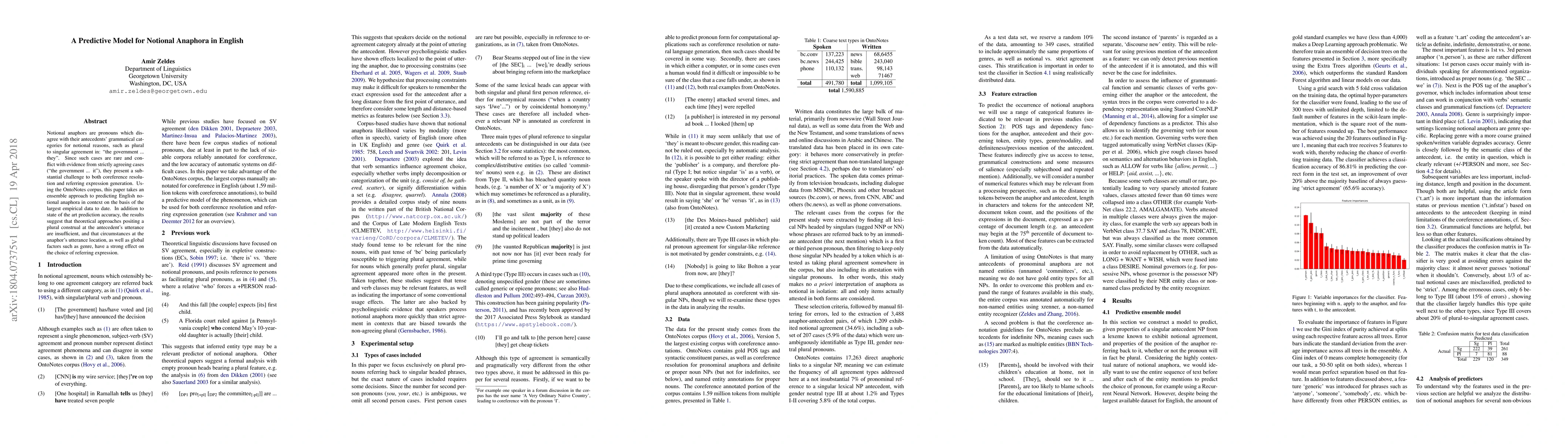 Notional anaphors are pronouns which disagree with their antecedents' grammatical categories for notional reasons, such as plural to singular agreement in: 'the government ... they'. Since such cases are rare and conflict with evidence from strictly agreeing cases ('the government ... it'), they present a substantial challenge to both coreference resolution and referring expression generation. Using the OntoNotes corpus, this paper takes an ensemble approach to predicting English notional anaphora in context on the basis of the largest empirical data to date. In addition to state of the art prediction accuracy, the results suggest that theoretical approaches positing a plural construal at the antecedent's utterance are insufficient, and that circumstances at the anaphor's utterance location, as well as global factors such as genre, have a strong effect on the choice of referring expression.