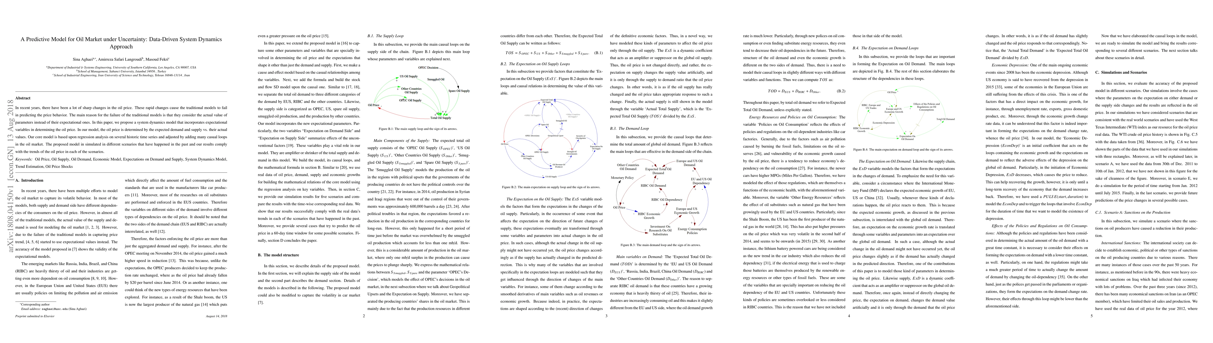 This paper proposes a system dynamics model for predicting oil market prices, considering expected demand and supply instead of actual values. The model, based on regression analysis and causal loops, accurately simulates past oil price scenarios.