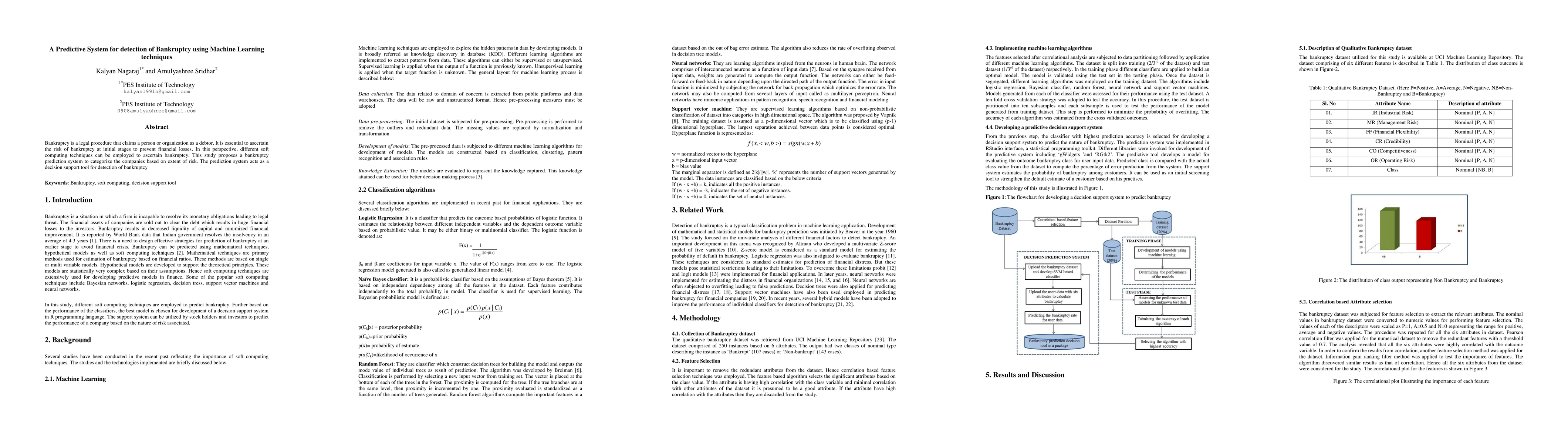 Bankruptcy is a legal procedure that claims a person or organization as a debtor. It is essential to ascertain the risk of bankruptcy at initial stages to prevent financial losses. In this perspective, different soft computing techniques can be employed to ascertain bankruptcy. This study proposes a bankruptcy prediction system to categorize the companies based on extent of risk. The prediction system acts as a decision support tool for detection of bankruptcy Keywords: Bankruptcy, soft computing, decision support tool