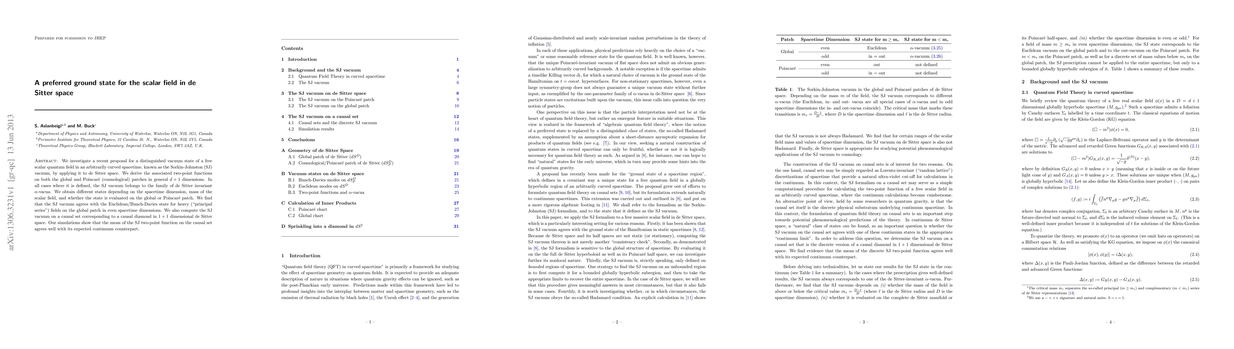 We investigate a recent proposal for a distinguished vacuum state of a free scalar quantum field in an arbitrarily curved spacetime, known as the Sorkin-Johnston (SJ) vacuum, by applying it to de Sitter space. We derive the associated two-point functions on both the global and Poincar\'e (cosmological) patches in general d+1 dimensions. In all cases where it is defined, the SJ vacuum belongs to the family of de Sitter invariant alpha-vacua. We obtain different states depending on the spacetime dimension, mass of the scalar field, and whether the state is evaluated on the global or Poincar\'e patch. We find that the SJ vacuum agrees with the Euclidean/Bunch-Davies state for heavy ("principal series") fields on the global patch in even spacetime dimensions. We also compute the SJ vacuum on a causal set corresponding to a causal diamond in 1+1 dimensional de Sitter space. Our simulations show that the mean of the SJ two-point function on the causal set agrees well with its expected continuum counterpart.