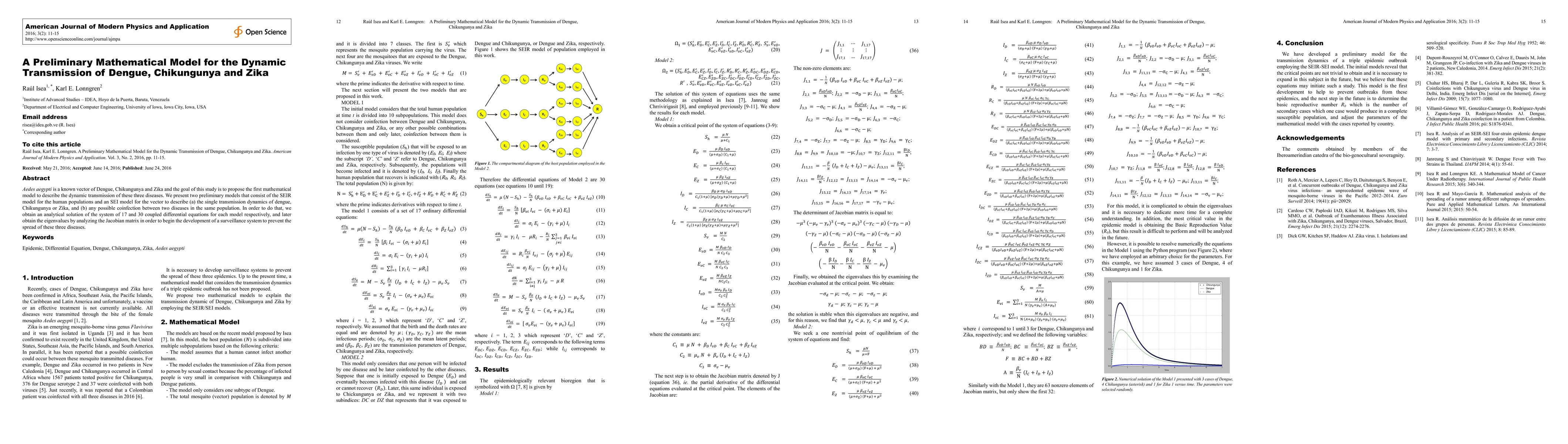 This paper proposes preliminary mathematical models—SEIR for human populations and SEI for the vector—to describe the dynamic transmission of Dengue, Chikungunya, and Zika by Aedes aegypti. Analytical solutions and eigenvalue analysis of the differential equations aim to develop a surveillance system for preventing disease spread.