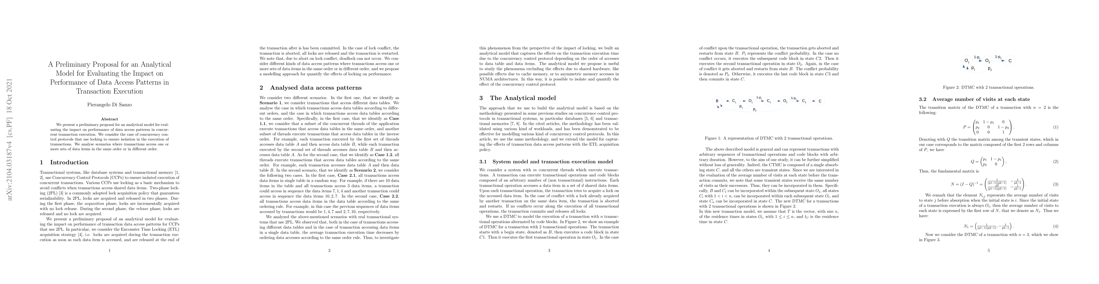 We present a preliminary proposal for an analytical model for evaluating the impact on performance of data access patterns in concurrent transaction execution. We consider the case of concurrency control protocols that use locking to ensure isolation in the execution of transactions. We analyse scenarios where transactions access one or more sets of data items in the same order or in different order.