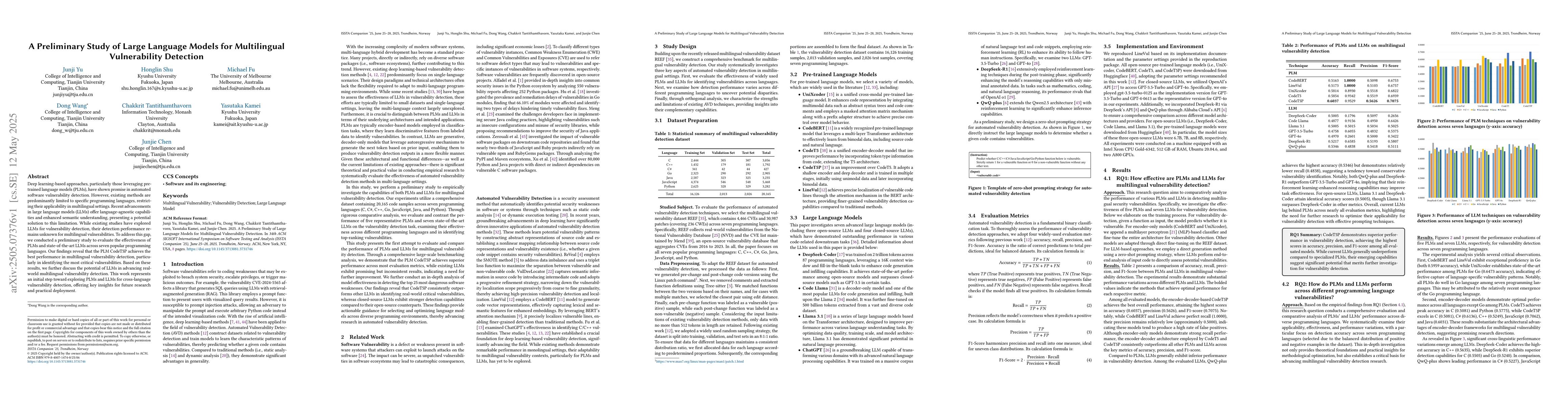 This study evaluates the effectiveness of large language models for multilingual vulnerability detection in seven programming languages, finding that a pre-trained model achieves the best performance.