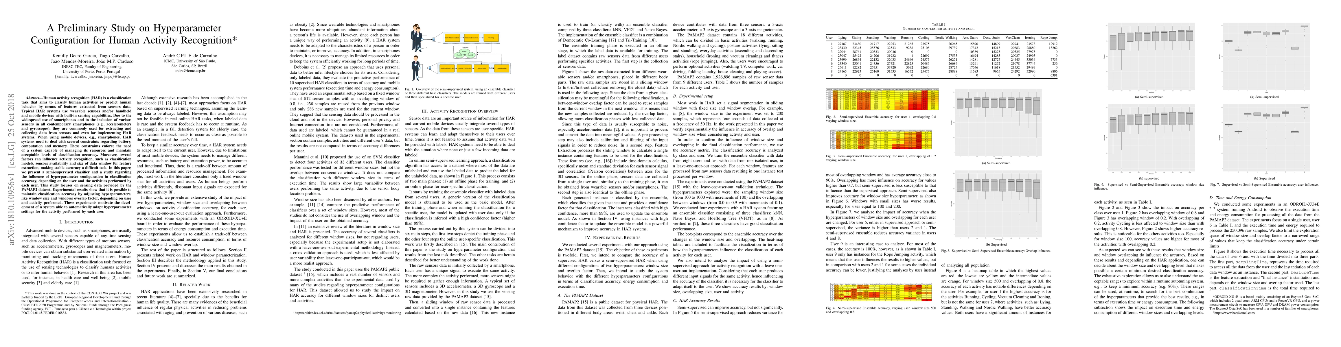 Human activity recognition (HAR) is a classification task that aims to classify human activities or predict human behavior by means of features extracted from sensors data. Typical HAR systems use wearable sensors and/or handheld and mobile devices with built-in sensing capabilities. Due to the widespread use of smartphones and to the inclusion of various sensors in all contemporary smartphones (e.g., accelerometers and gyroscopes), they are commonly used for extracting and collecting data from sensors and even for implementing HAR systems. When using mobile devices, e.g., smartphones, HAR systems need to deal with several constraints regarding battery, computation and memory. These constraints enforce the need of a system capable of managing its resources and maintain acceptable levels of classification accuracy. Moreover, several factors can influence activity recognition, such as classification models, sensors availability and size of data window for feature extraction, making stable accuracy a difficult task. In this paper, we present a semi-supervised classifier and a study regarding the influence of hyperparameter configuration in classification accuracy, depending on the user and the activities performed by each user. This study focuses on sensing data provided by the PAMAP2 dataset. Experimental results show that it is possible to maintain classification accuracy by adjusting hyperparameters, like window size and windows overlap factor, depending on user and activity performed. These experiments motivate the development of a system able to automatically adapt hyperparameter settings for the activity performed by each user.