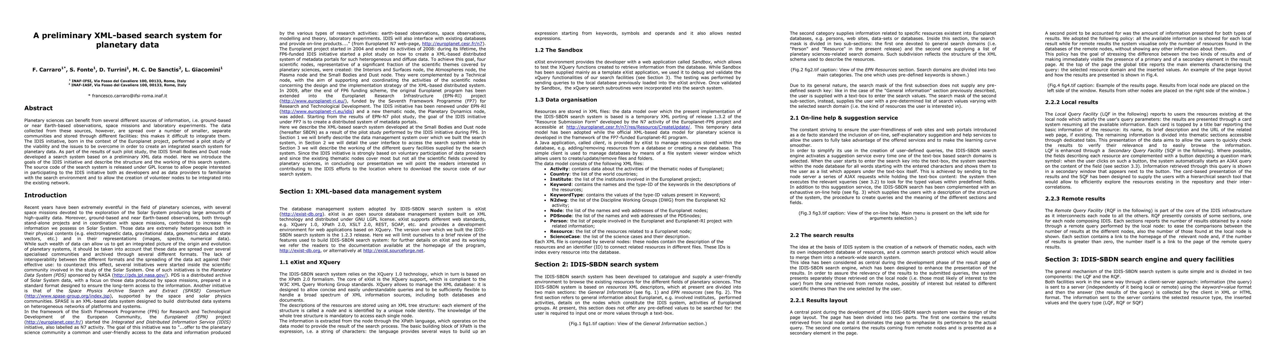 Planetary sciences can benefit from several different sources of information, i.e. ground-based or near Earth-based observations, space missions and laboratory experiments. The data collected from these sources, however, are spread over a number of smaller, separate communities and stored through different facilities: this makes it difficult to integrate them. The IDIS initiative, born in the context of the Europlanet project, performed a pilot study of the viability and the issues to be overcome in order to create an integrated search system for planetary data. As part of the results of such pilot study, the IDIS Small Bodies and Dust node developed a search system based on a preliminary XML data model. Here we introduce the goals of the IDIS initiative and describe the structure and the working of this search system. The source code of the search system is released under GPL license to allow people interested in participating to the IDIS initiative both as developers and as data providers to familiarise with the search environment and to allow the creation of volunteer nodes to be integrated into the existing network.