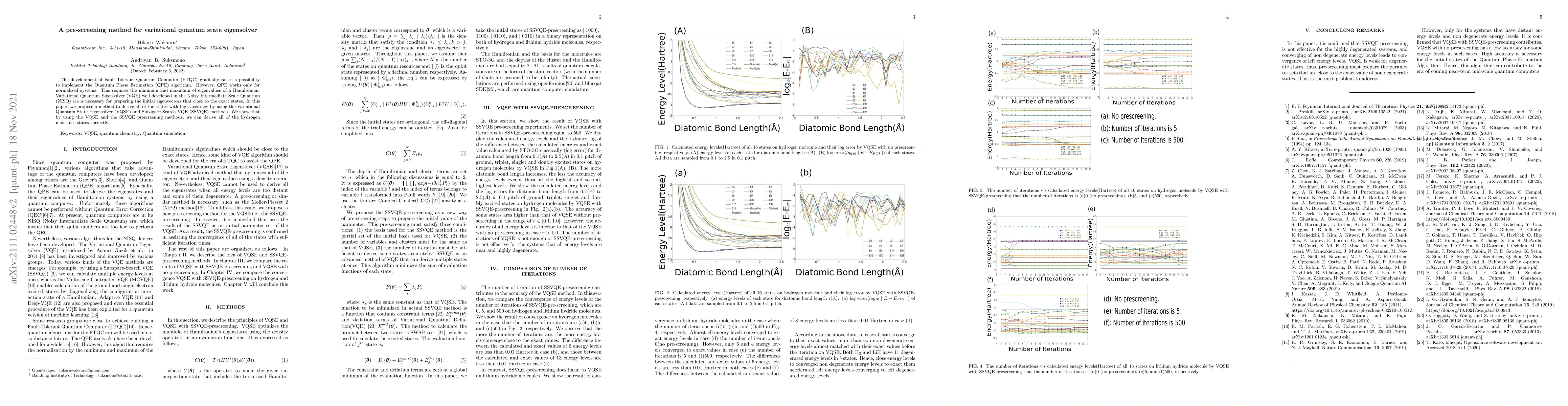 This paper proposes a prescreening method combining Variational Quantum State Eigensolver (VQSE) and Subspace-Search VQE (SSVQE) to accurately derive all states of hydrogen molecules, addressing the limitations of Quantum Phase Estimation (QPE) for non-normalized systems in the context of developing Fault-Tolerant Quantum Computers.
