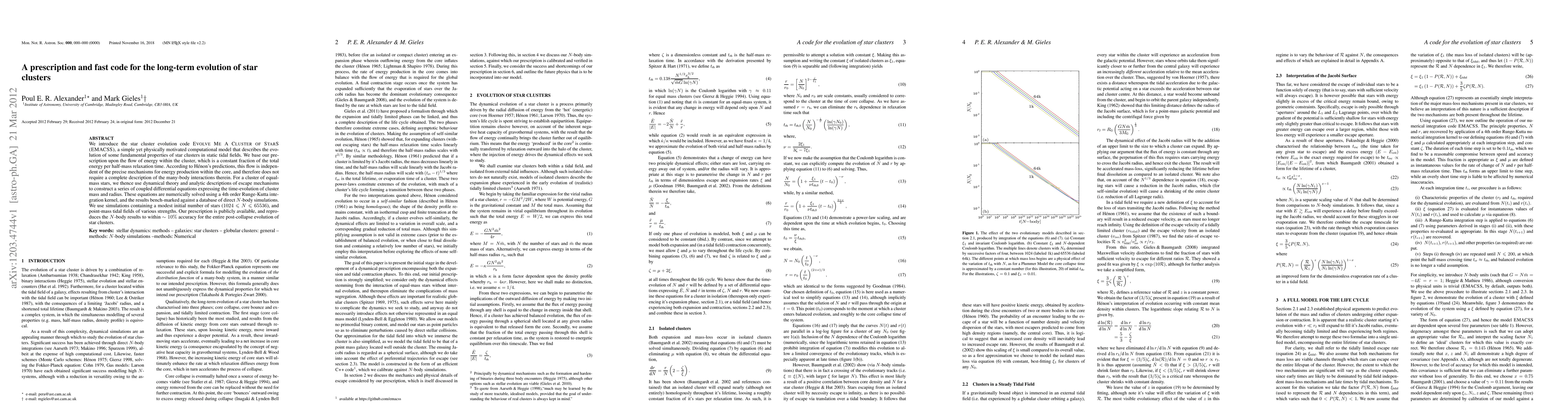 We introduce the star cluster evolution code Evolve Me A Cluster of StarS (EMACSS), a simple yet physically motivated computational model that describes the evolution of some fundamental properties of star clusters in static tidal fields. We base our prescription upon the flow of energy within the cluster, which is a constant fraction of the total energy per half-mass relaxation time. According to Henon's predictions, this flow is independent of the precise mechanisms for energy production within the core, and therefore does not require a complete description of the many-body interactions therein. For a cluster of equal-mass stars, we thence use dynamical theory and analytic descriptions of escape mechanisms to construct a series of coupled differential equations expressing the time evolution of cluster mass and radius. These equations are numerically solved using a fourth-order Runge-Kutta integration kernel, and the results benchmarked against a data base of direct N-body simulations. We use simulations containing a modest initial number of stars (1024 <= N <= 65 536) and point-mass tidal fields of various strengths. Our prescription is publicly available and reproduces the N-body results to within ~10 per cent accuracy for the entire post-collapse evolution of star clusters.