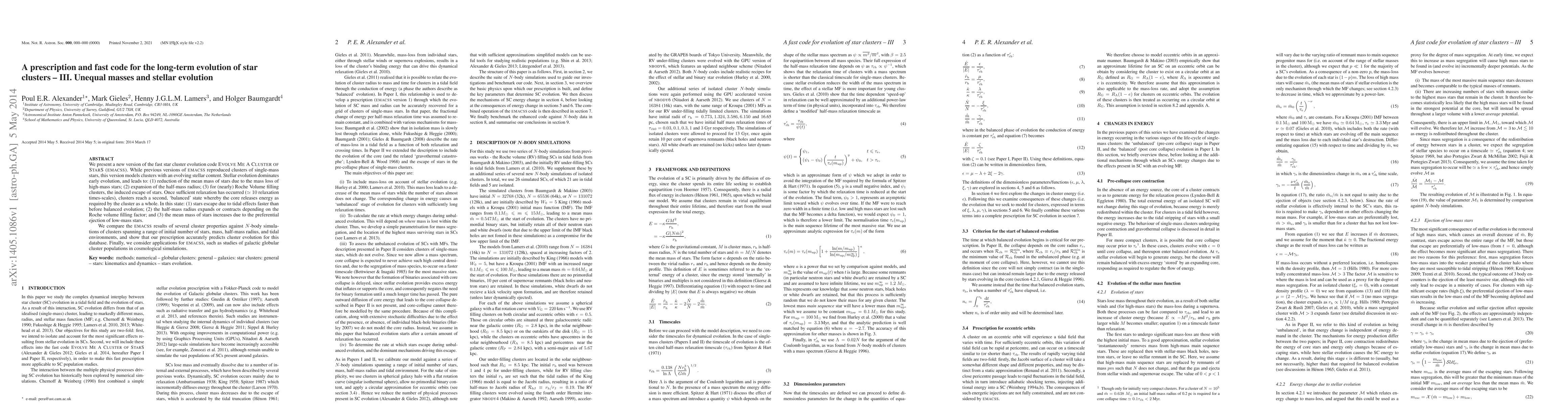 We present a new version of the fast star cluster evolution code Evolve Me A Cluster of StarS (EMACSS). While previous versions of EMACSS reproduced clusters of single-mass stars, this version models clusters with an evolving stellar content. Stellar evolution dominates early evolution, and leads to: (1) reduction of the mean mass of stars due to the mass loss of high-mass stars; (2) expansion of the half-mass radius; (3) for (nearly) Roche Volume filling clusters, the induced escape of stars. Once sufficient relaxation has occurred (~ 10 relaxation times-scales), clusters reach a second, 'balanced' state whereby the core releases energy as required by the cluster as a whole. In this state: (1) stars escape due to tidal effects faster than before balanced evolution; (2) the half-mass radius expands or contracts depending on the Roche volume filling factor; and (3) the mean mass of stars increases due to the preferential ejection of low-mass stars. We compare the EMACSS results of several cluster properties against N-body simulations of clusters spanning a range of initial number of stars, mass, half-mass radius, and tidal environments, and show that our prescription accurately predicts cluster evolution for this database. Finally, we consider applications for EMACSS, such as studies of galactic globular cluster populations in cosmological simulations.