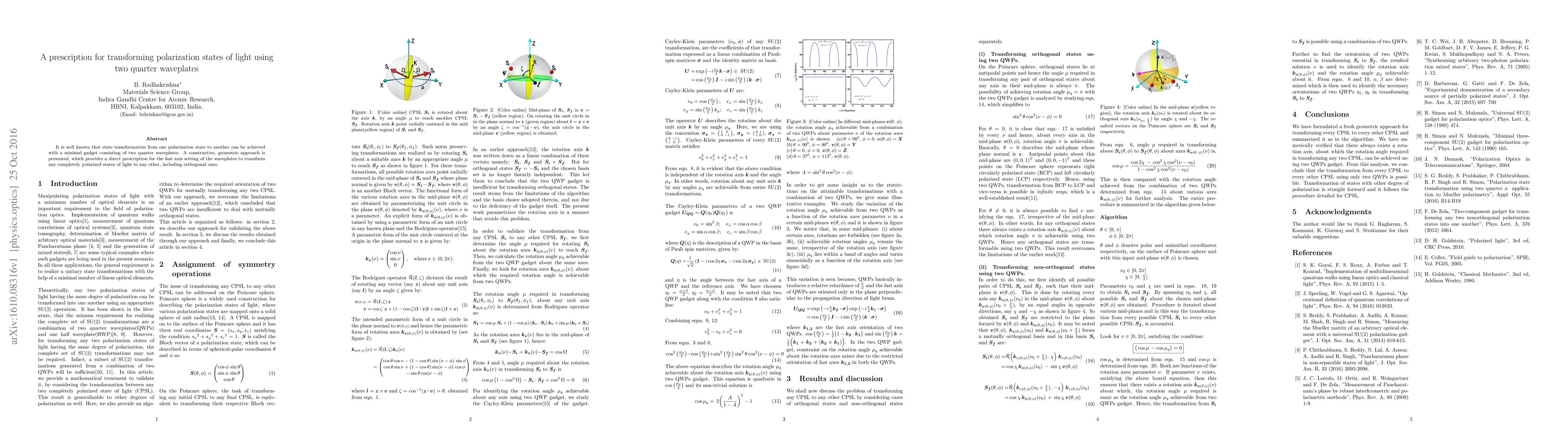 Summary: This paper presents a geometric method for transforming any completely polarized light states using two quarter waveplates, providing a direct prescription for setting their fast axes to achieve the desired polarization state transformation.