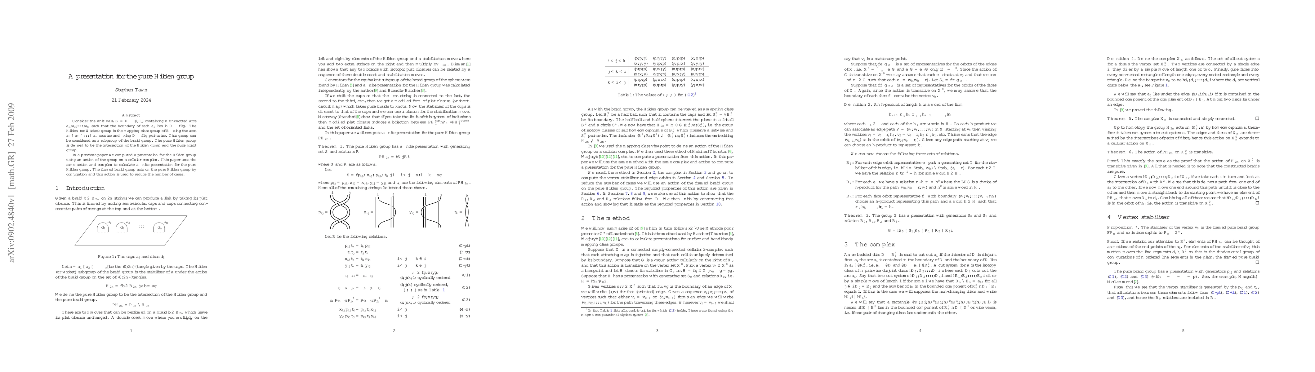 Consider the unit ball, $B = D \times [0,1]$, containing $n$ unknotted arcs $a_1, a_2, ..., a_n$ such that the boundary of each $a_i$ lies in $D \times \{0\}$. The Hilden (or Wicket) group is the mapping class group of $B$ fixing the arcs $a_1 \cup a_2 \cup ... \cup a_n$ setwise and fixing $D \times \{1\}$ pointwise. This group can be considered as a subgroup of the braid group. The pure Hilden group is defined to be the intersection of the Hilden group and the pure braid group. In a previous paper we computed a presentaion for the Hilden group using an action of the group on a cellular complex. This paper uses the same action and complex to calculate a finite presentation for the pure Hilden group. The framed braid group acts on the pure Hilden group by conjugation and this action is used to reduce the number of cases.