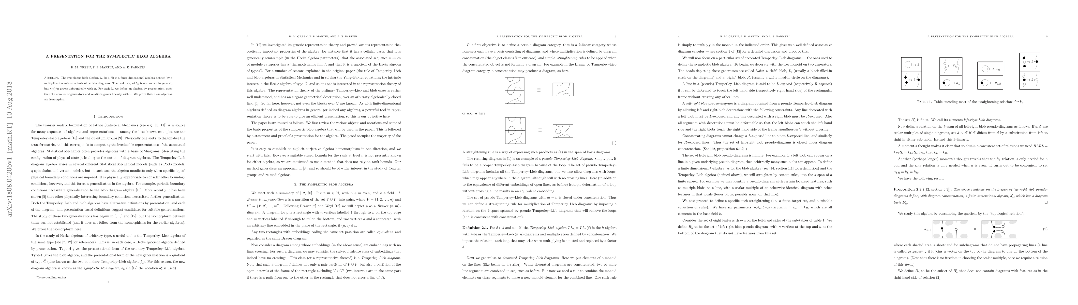 The symplectic blob algebra $b_n$ ($n \in \mathbb{N}$) is a finite dimensional algebra defined by a multiplication rule on a basis of certain diagrams. The rank $r(n)$ of $b_n$ is not known in general, but $r(n)/n$ grows unboundedly with $n$. For each $b_n$ we define an algebra by presentation, such that the number of generators and relations grows linearly with $n$. We prove that these algebras are isomorphic.