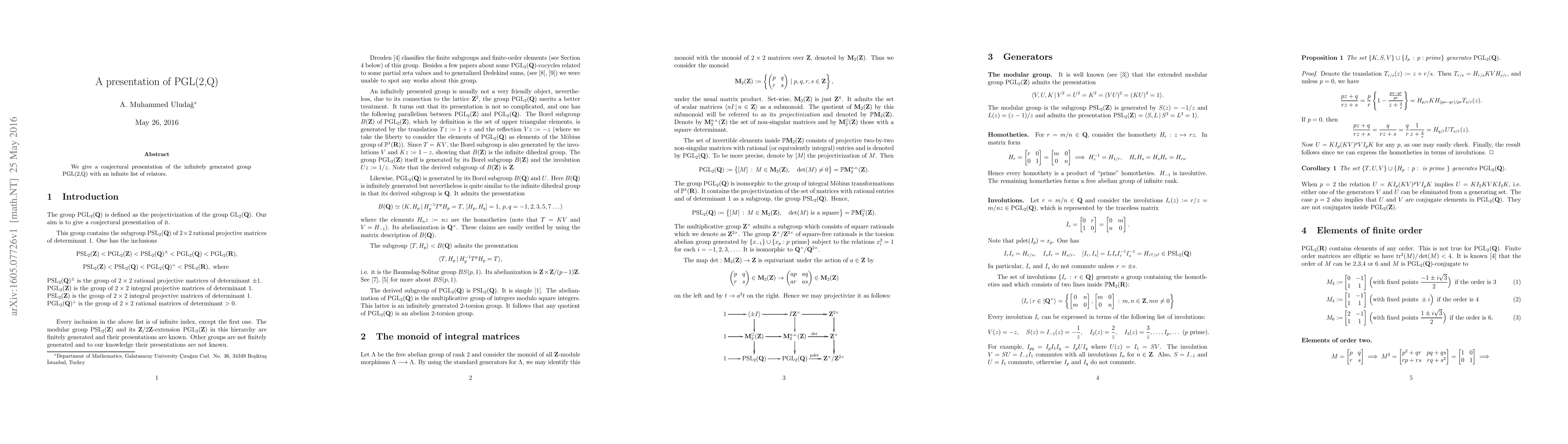 We give a conjectural presentation of the infinitely generated group PGL(2,Q) with an infinite list of relators.