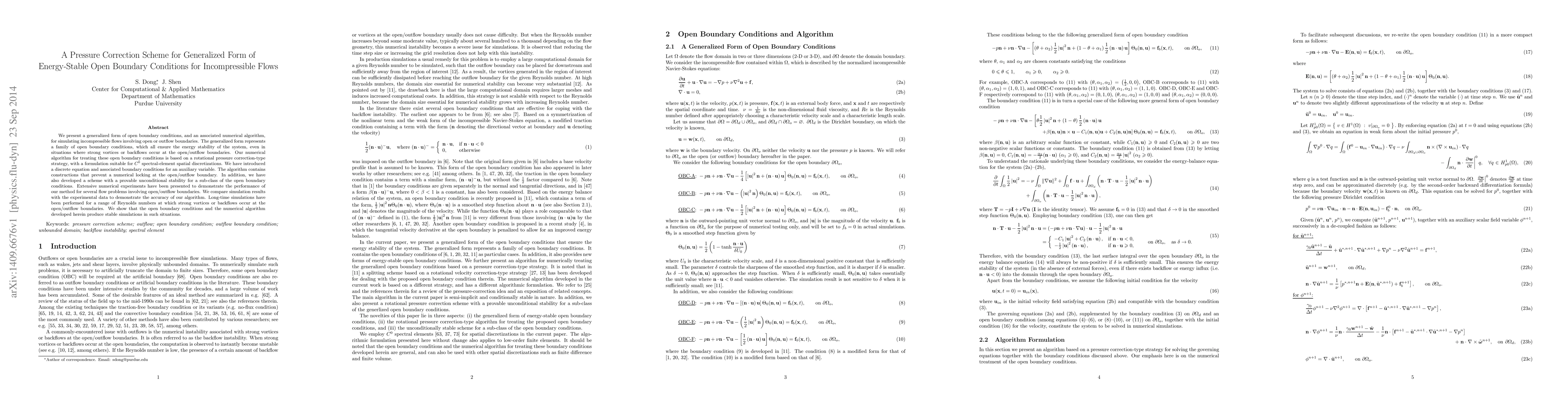 This paper introduces a generalized form of energy-stable open boundary conditions for incompressible flows, along with an associated numerical algorithm based on a rotational pressure correction strategy. The method ensures stability and accuracy even in scenarios with strong vortices or backflows, validated through extensive numerical experiments and comparisons with experimental data.