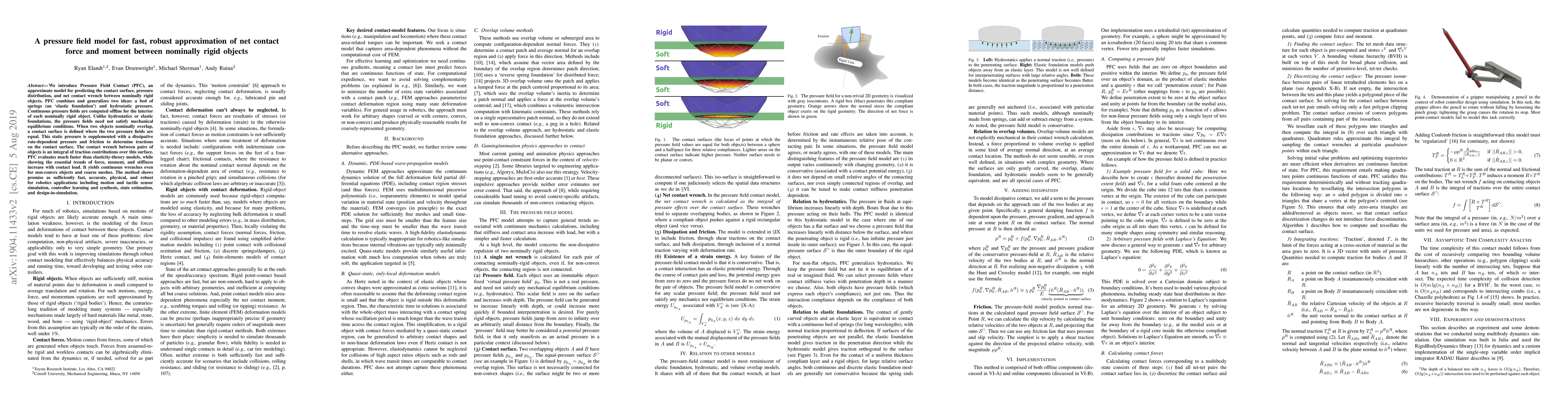 We introduce an approximate model for predicting the net contact wrench between nominally rigid objects for use in simulation, control, and state estimation. The model combines and generalizes two ideas: a bed of springs (an "elastic foundation") and hydrostatic pressure. In this model, continuous pressure fields are computed offline for the interior of each nominally rigid object. Unlike hydrostatics or elastic foundations, the pressure fields need not satisfy mechanical equilibrium conditions. When two objects nominally overlap, a contact surface is defined where the two pressure fields are equal. This static pressure is supplemented with a dissipative rate-dependent pressure and friction to determine tractions on the contact surface. The contact wrench between pairs of objects is an integral of traction contributions over this surface. The model evaluates much faster than elasticity-theory models, while showing the essential trends of force, moment, and stiffness increase with contact load. It yields continuous wrenches even for non-convex objects and coarse meshes. The method shows promise as sufficiently fast, accurate, and robust for design-in-simulation of robot controllers.