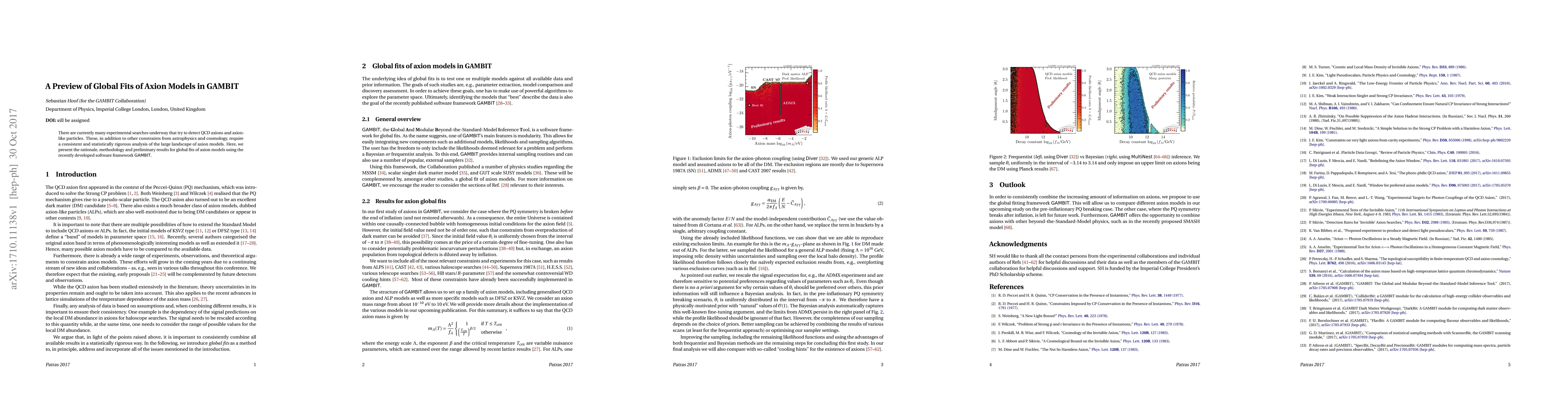 This paper outlines the methodology and initial findings of global fits for axion models using the GAMBIT framework, aiming to analyze the vast array of experimental searches and theoretical constraints for QCD axions and axion-like particles. Preliminary results demonstrate the framework's potential for a statistically rigorous analysis.