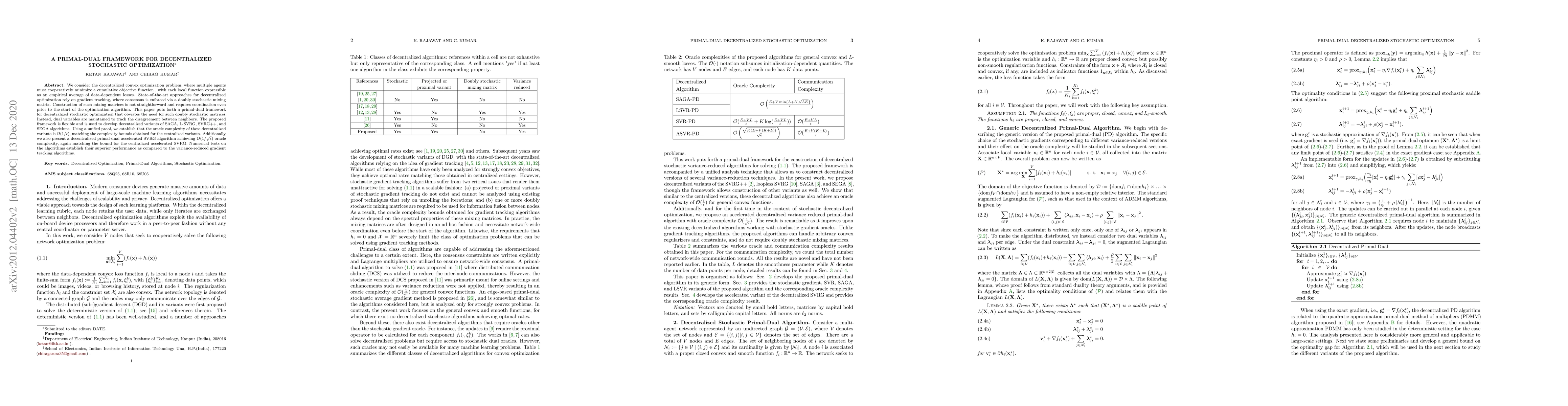 This paper introduces a primal-dual framework for decentralized stochastic optimization that eliminates the need for doubly stochastic mixing matrices, instead using dual variables to track neighbor disagreement. The framework is applied to develop decentralized variants of several optimization algorithms, achieving comparable oracle complexities to their centralized counterparts.
