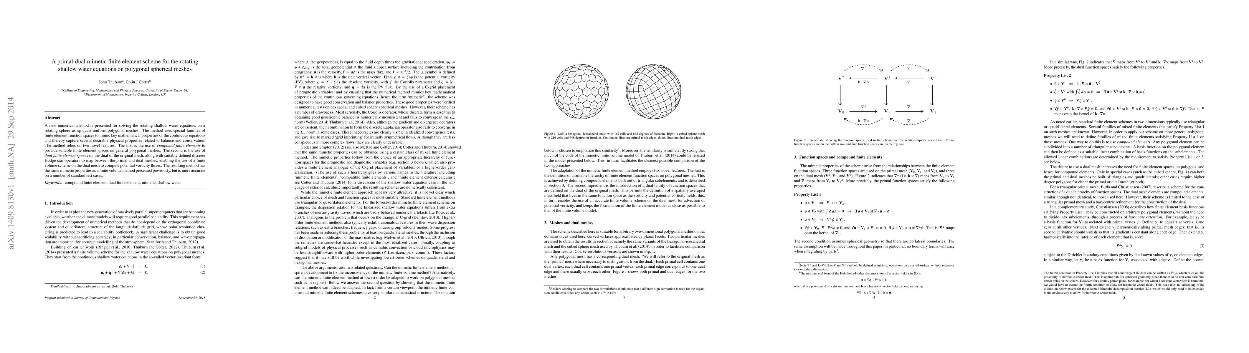 This paper introduces a primal-dual mimetic finite element scheme for solving rotating shallow water equations on polygonal spherical meshes, utilizing compound finite elements and dual finite element spaces to enhance accuracy and conserve physical properties. The method employs dual meshes and discrete Hodge star operators for improved flux computations.