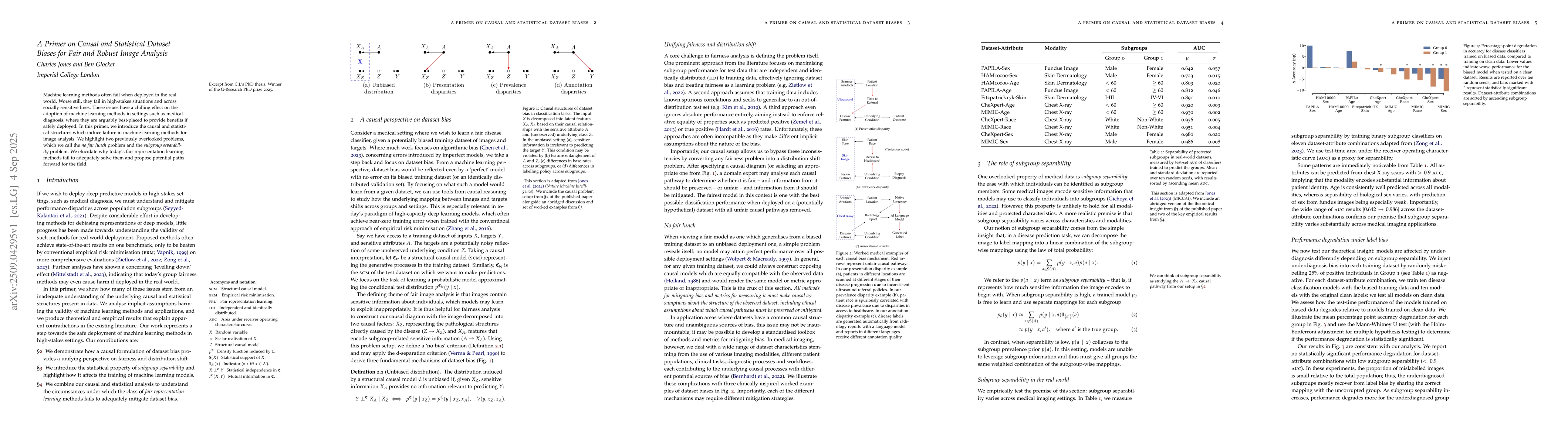 Machine learning methods often fail when deployed in the real world. Worse still, they fail in high-stakes situations and across socially sensitive lines. These issues have a chilling effect on the adoption of machine learning methods in settings such as medical diagnosis, where they are arguably best-placed to provide benefits if safely deployed. In this primer, we introduce the causal and statistical structures which induce failure in machine learning methods for image analysis. We highlight two previously overlooked problems, which we call the \textit{no fair lunch} problem and the \textit{subgroup separability} problem. We elucidate why today's fair representation learning methods fail to adequately solve them and propose potential paths forward for the field.