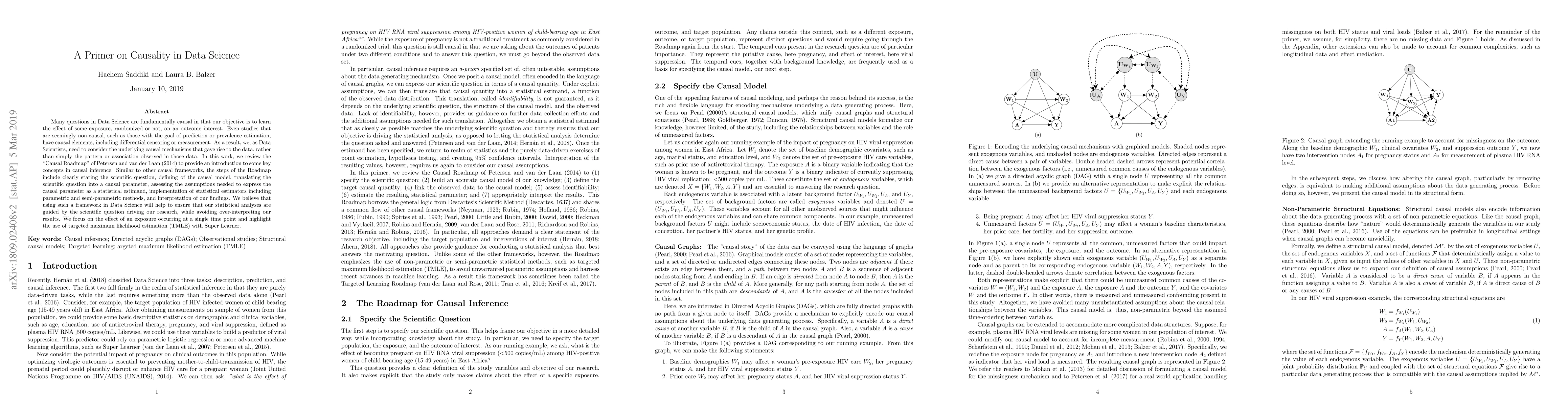 Many questions in Data Science are fundamentally causal in that our objective is to learn the effect of some exposure, randomized or not, on an outcome interest. Even studies that are seemingly non-causal, such as those with the goal of prediction or prevalence estimation, have causal elements, including differential censoring or measurement. As a result, we, as Data Scientists, need to consider the underlying causal mechanisms that gave rise to the data, rather than simply the pattern or association observed in those data. In this work, we review the 'Causal Roadmap' of Petersen and van der Laan (2014) to provide an introduction to some key concepts in causal inference. Similar to other causal frameworks, the steps of the Roadmap include clearly stating the scientific question, defining of the causal model, translating the scientific question into a causal parameter, assessing the assumptions needed to express the causal parameter as a statistical estimand, implementation of statistical estimators including parametric and semi-parametric methods, and interpretation of our findings. We believe that using such a framework in Data Science will help to ensure that our statistical analyses are guided by the scientific question driving our research, while avoiding over-interpreting our results. We focus on the effect of an exposure occurring at a single time point and highlight the use of targeted maximum likelihood estimation (TMLE) with Super Learner.