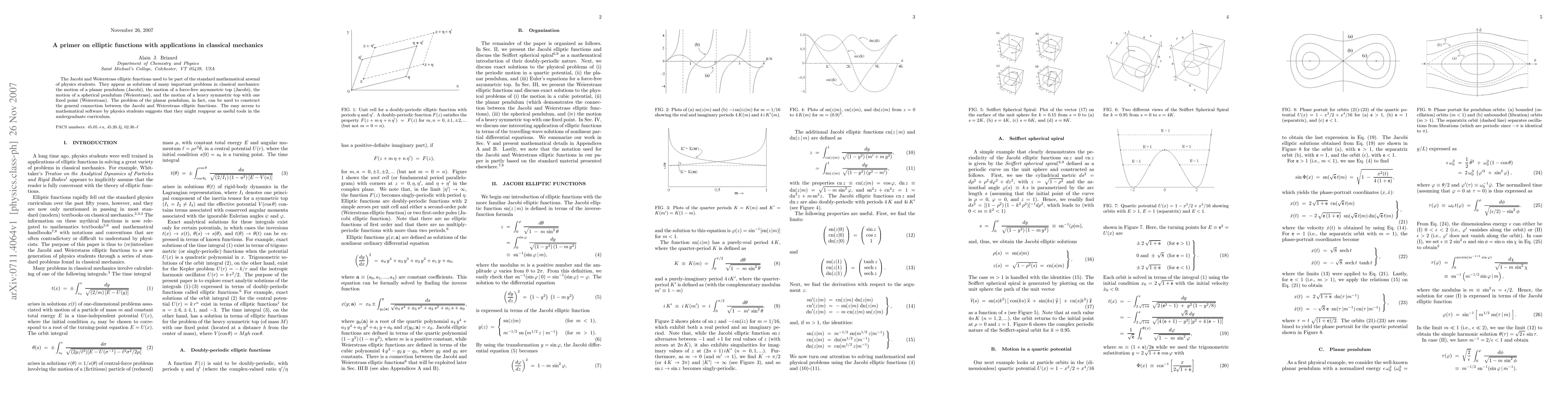 This paper provides an introduction to Jacobi and Weierstrass elliptic functions, highlighting their classical mechanics applications, including pendulum motions. It suggests their potential resurgence in the physics curriculum due to modern mathematical software accessibility.