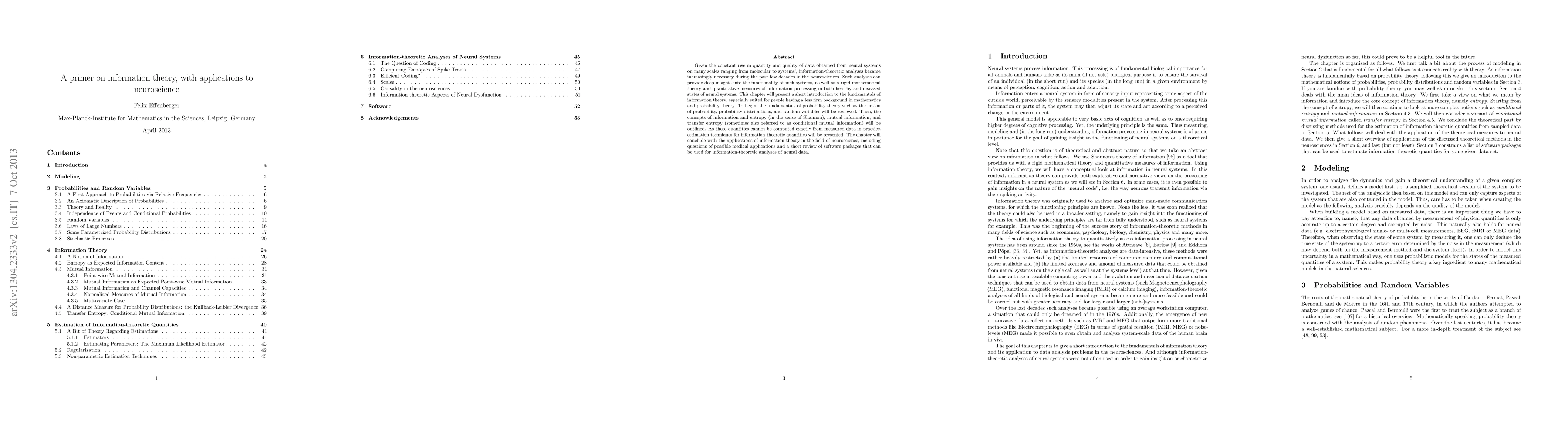 This paper provides an accessible introduction to information theory, focusing on its relevance to neuroscience. It covers fundamental concepts like probability, entropy, and mutual information, and discusses estimation techniques for practical applications, concluding with a review of software tools for analyzing neural data.