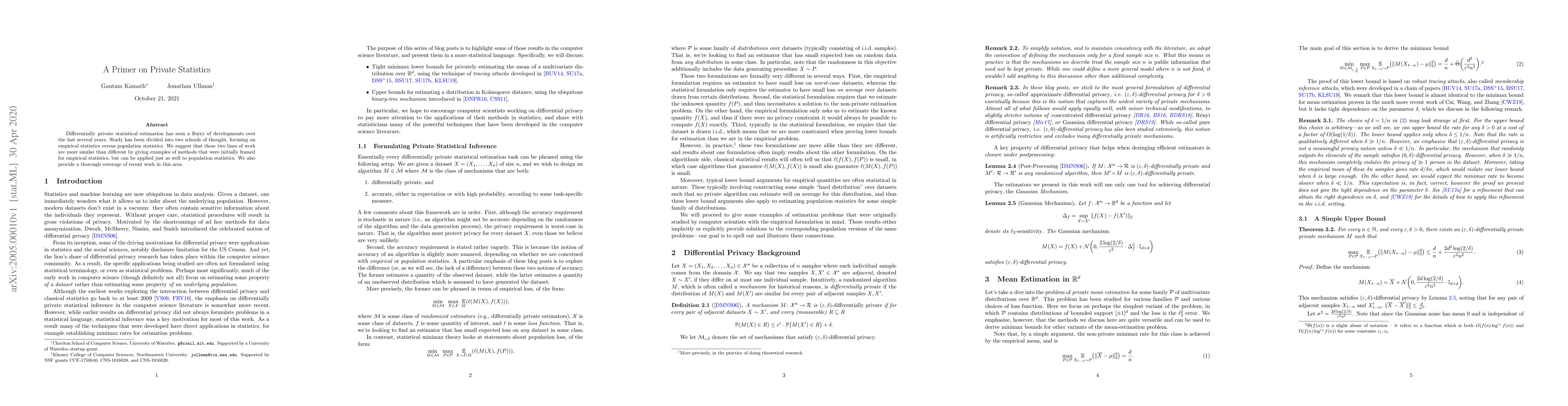 Differentially private statistical estimation has seen a flurry of developments over the last several years. Study has been divided into two schools of thought, focusing on empirical statistics versus population statistics. We suggest that these two lines of work are more similar than different by giving examples of methods that were initially framed for empirical statistics, but can be applied just as well to population statistics. We also provide a thorough coverage of recent work in this area.