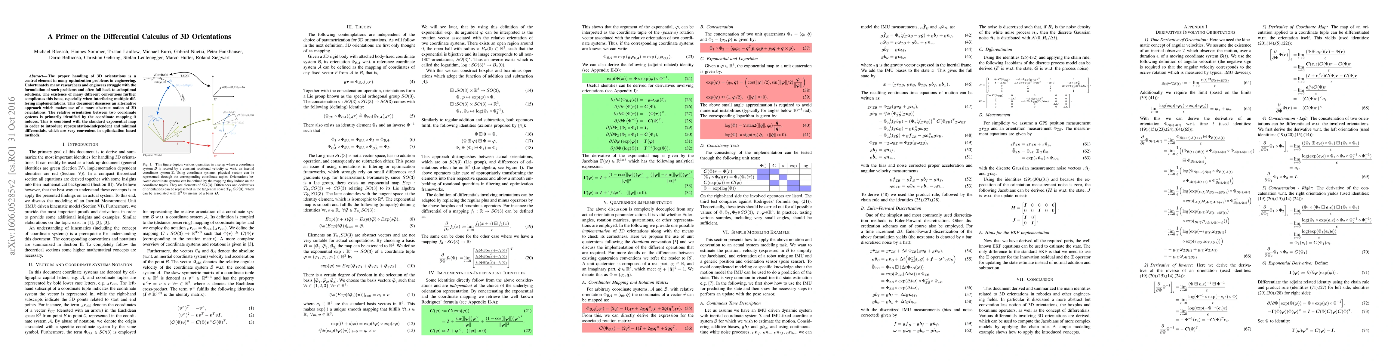 The proper handling of 3D orientations is a central element in many optimization problems in engineering. Unfortunately many researchers and engineers struggle with the formulation of such problems and often fall back to suboptimal solutions. The existence of many different conventions further complicates this issue, especially when interfacing multiple differing implementations. This document discusses an alternative approach which makes use of a more abstract notion of 3D orientations. The relative orientation between two coordinate systems is primarily identified by the coordinate mapping it induces. This is combined with the standard exponential map in order to introduce representation-independent and minimal differentials, which are very convenient in optimization based methods.
