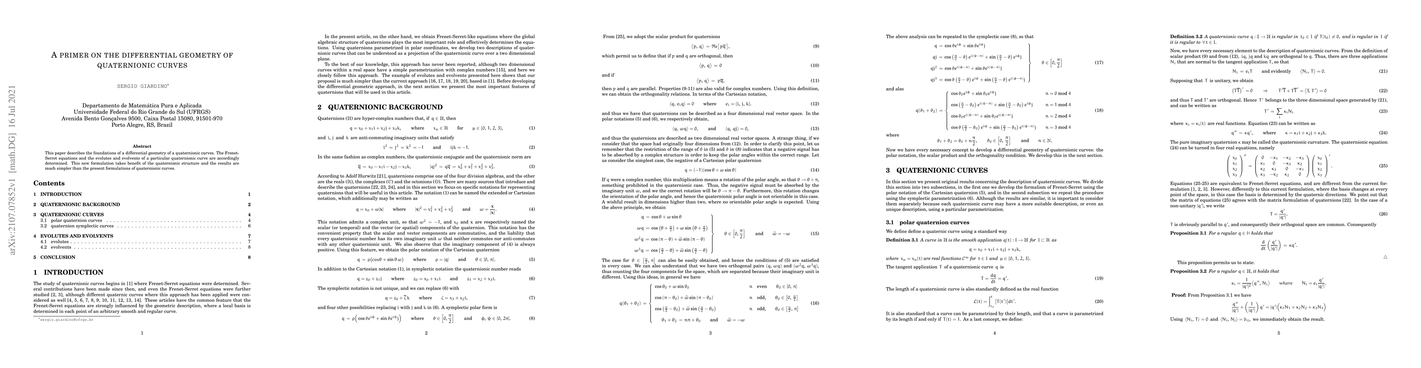 This paper lays the groundwork for the differential geometry of quaternionic curves, deriving the Frenet-Serret equations and exploring evolutes and evolvents, revealing simpler results leveraging quaternionic structure.