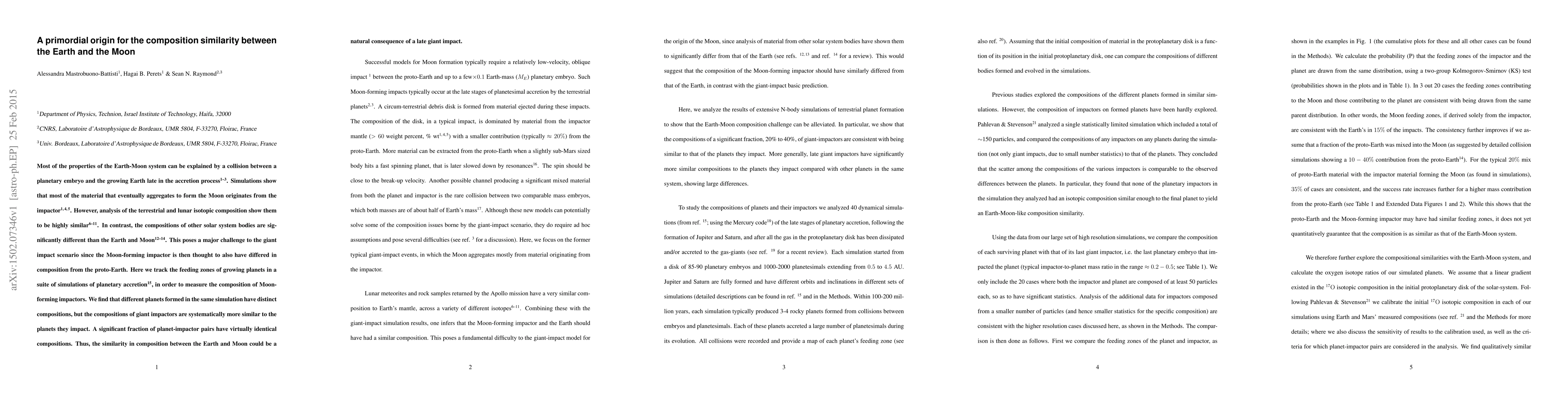This research finds that the compositional similarity between Earth and the Moon likely stems from a late giant impact, where the impactor's composition was naturally more similar to the proto-Earth due to the feeding zones of planetary accretion. This challenges the notion that the Moon-forming impactor should have a different composition.