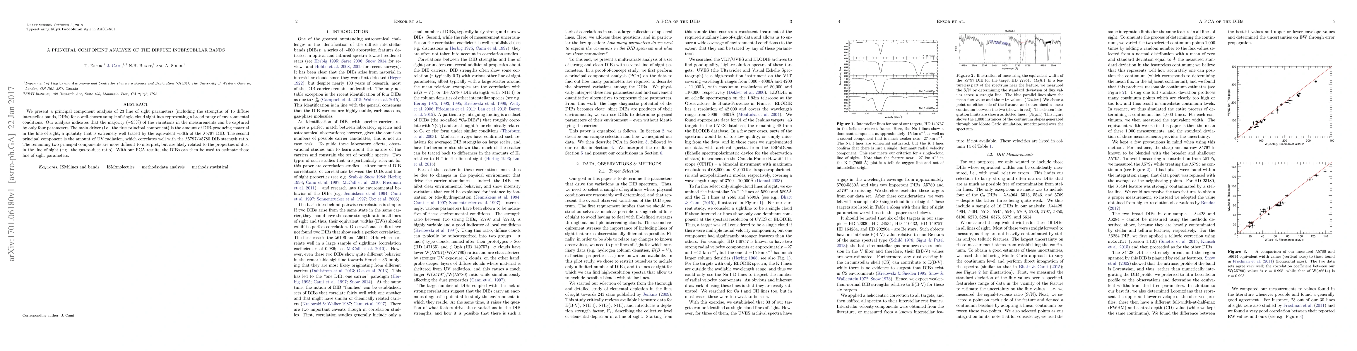 This paper uses principal component analysis to study 23 line of sight parameters, including diffuse interstellar bands, and finds that 93% of variations are captured by four main factors, primarily the DIB-producing material and UV radiation. The study suggests these factors can help estimate line of sight parameters using DIBs.
