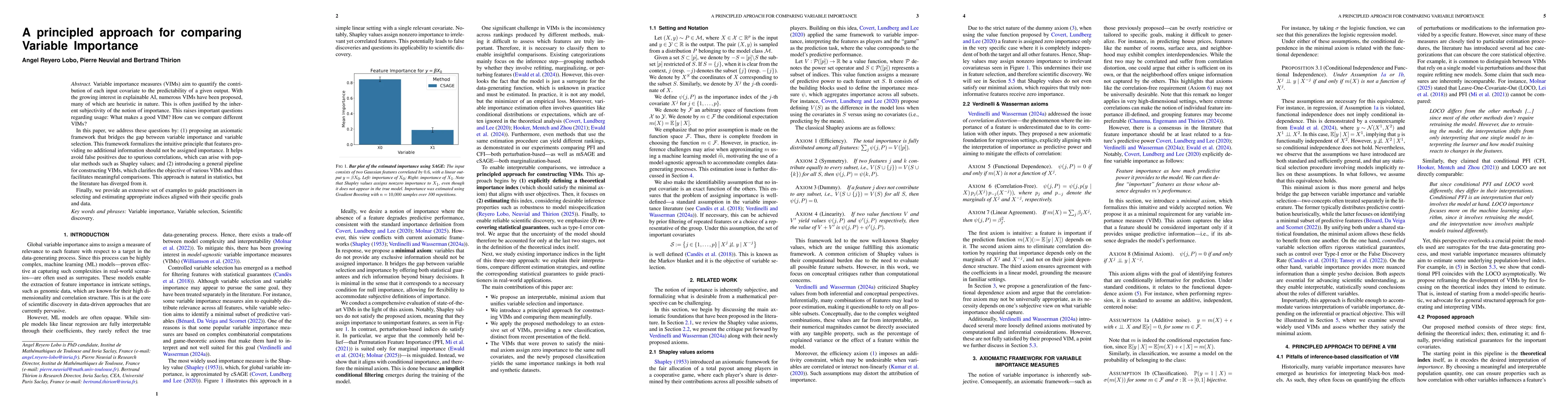 Variable importance measures (VIMs) aim to quantify the contribution of each input covariate to the predictability of a given output. With the growing interest in explainable AI, numerous VIMs have been proposed, many of which are heuristic in nature. This is often justified by the inherent subjectivity of the notion of importance. This raises important questions regarding usage: What makes a good VIM? How can we compare different VIMs? In this paper, we address these questions by: (1) proposing an axiomatic framework that bridges the gap between variable importance and variable selection. This framework formalizes the intuitive principle that features providing no additional information should not be assigned importance. It helps avoid false positives due to spurious correlations, which can arise with popular methods such as Shapley values; and (2) introducing a general pipeline for constructing VIMs, which clarifies the objective of various VIMs and thus facilitates meaningful comparisons. This approach is natural in statistics, but the literature has diverged from it. Finally, we provide an extensive set of examples to guide practitioners in selecting and estimating appropriate indices aligned with their specific goals and data.