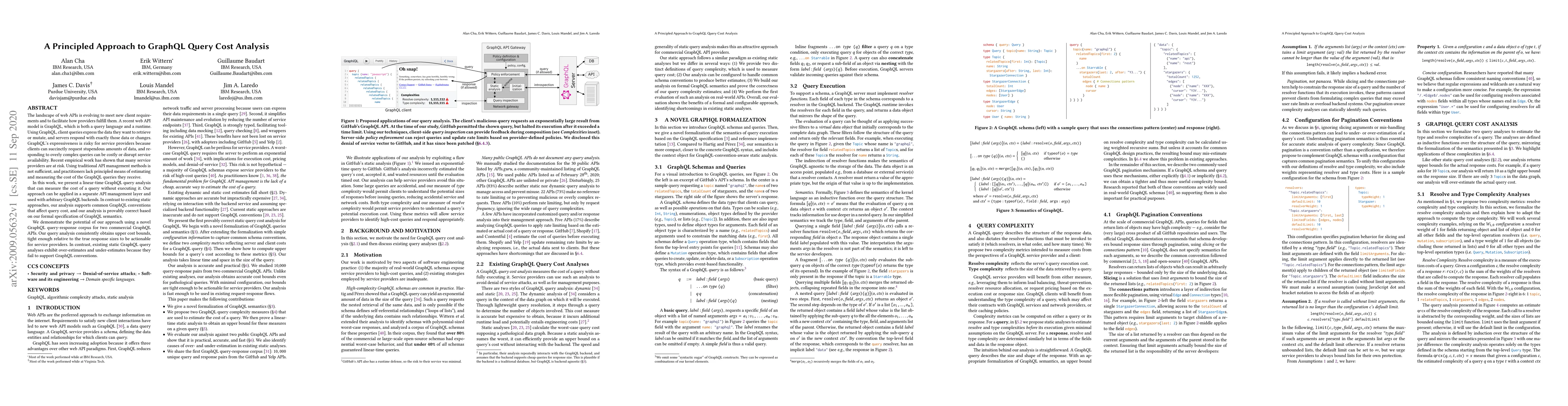 The landscape of web APIs is evolving to meet new client requirements and to facilitate how providers fulfill them. A recent web API model is GraphQL, which is both a query language and a runtime. Using GraphQL, client queries express the data they want to retrieve or mutate, and servers respond with exactly those data or changes. GraphQL's expressiveness is risky for service providers because clients can succinctly request stupendous amounts of data, and responding to overly complex queries can be costly or disrupt service availability. Recent empirical work has shown that many service providers are at risk. Using traditional API management methods is not sufficient, and practitioners lack principled means of estimating and measuring the cost of the GraphQL queries they receive. In this work, we present a linear-time GraphQL query analysis that can measure the cost of a query without executing it. Our approach can be applied in a separate API management layer and used with arbitrary GraphQL backends. In contrast to existing static approaches, our analysis supports common GraphQL conventions that affect query cost, and our analysis is provably correct based on our formal specification of GraphQL semantics. We demonstrate the potential of our approach using a novel GraphQL query-response corpus for two commercial GraphQL APIs. Our query analysis consistently obtains upper cost bounds, tight enough relative to the true response sizes to be actionable for service providers. In contrast, existing static GraphQL query analyses exhibit over-estimates and under-estimates because they fail to support GraphQL conventions.