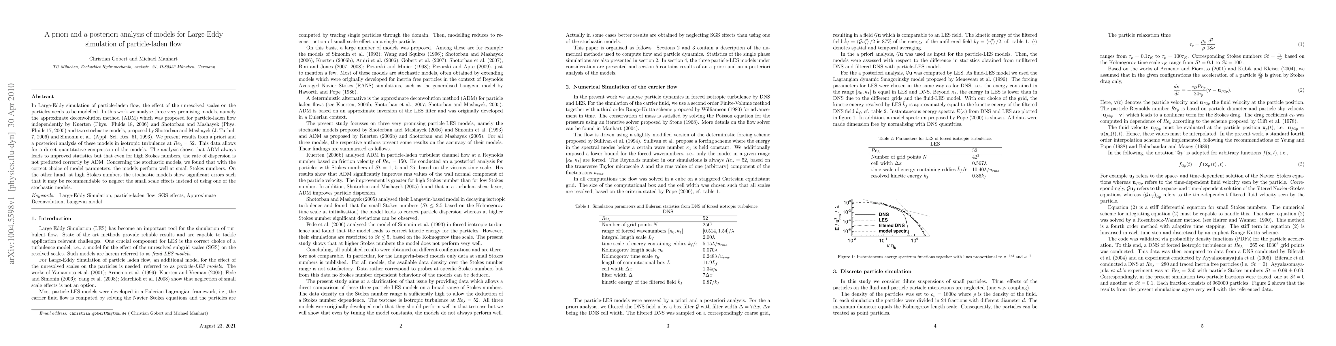 In Large-Eddy simulation of particle-laden flow, the effect of the unresolved scales on the particles needs to be modelled. In this work we analyse three very promising models, namely the approximate deconvolution method (ADM) which was proposed for particle-laden flow independently by Kuerten (Phys. Fluids 18, 2006) and Shotorban and Mashayek (Phys. Fluids 17, 2005) and two stochastic models, proposed by Shotorban and Mashayek (J. Turbul. 7, 2006) and Simonin et al. (Appl. Sci. Res. 51, 1993). We present results from a priori and a posteriori analysis of these models in isotropic turbulence at Re_lambda=52. This data allows for a direct quantitative comparison of the models. The analysis shows that ADM always leads to improved statistics but that even for high Stokes numbers, the rate of dispersion is not predicted correctly by ADM. Concerning the stochastic models, we found that with the correct choice of model parameters, the models perform well at small Stokes numbers. On the other hand, at high Stokes numbers the stochastic models show significant errors such that it may be recommendable to neglect the small scale effects instead of using one of the stochastic models.