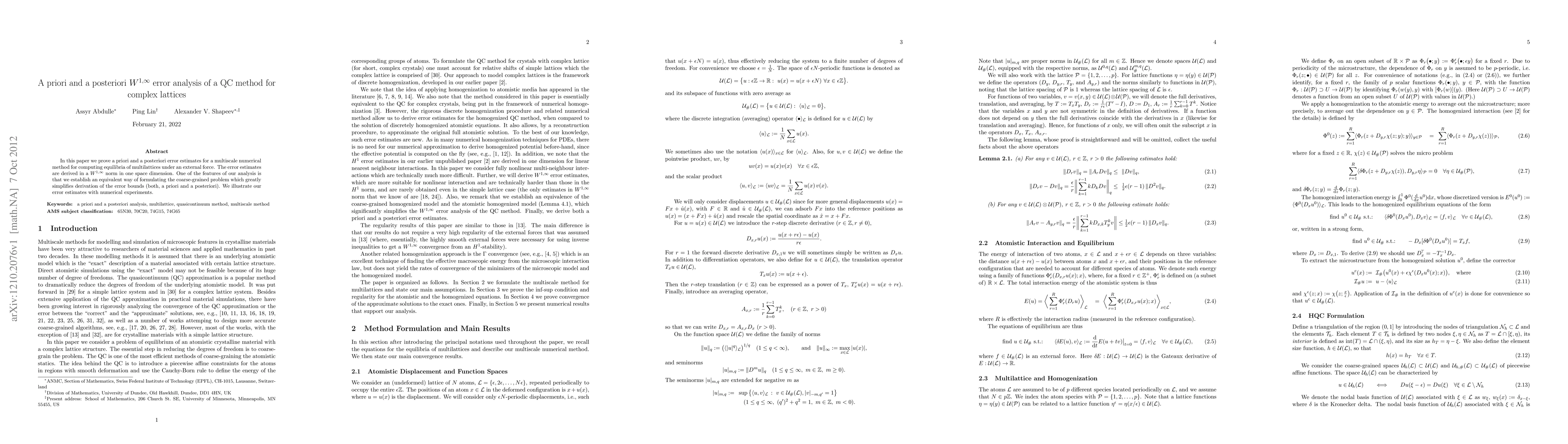 This paper presents a priori and a posteriori error estimates for a QC method used to compute equilibria of multilattices under external forces, derived in a $W^{1,\infty}$ norm. The analysis simplifies error bound derivation through an equivalent coarse-grained formulation, validated with numerical experiments.