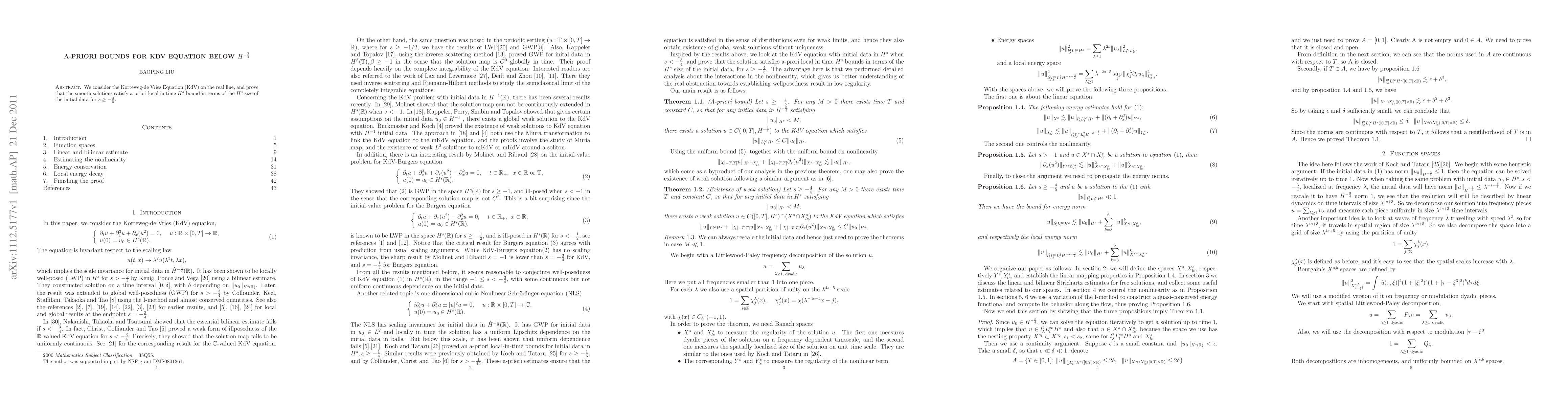 We consider the Korteweg-de Vries Equation (KdV) on the real line, and prove that the smooth solutions satisfy a-priori local in time $H^s$ bound in terms of the $H^s$ size of the initial data for $s\geq -4/5$.