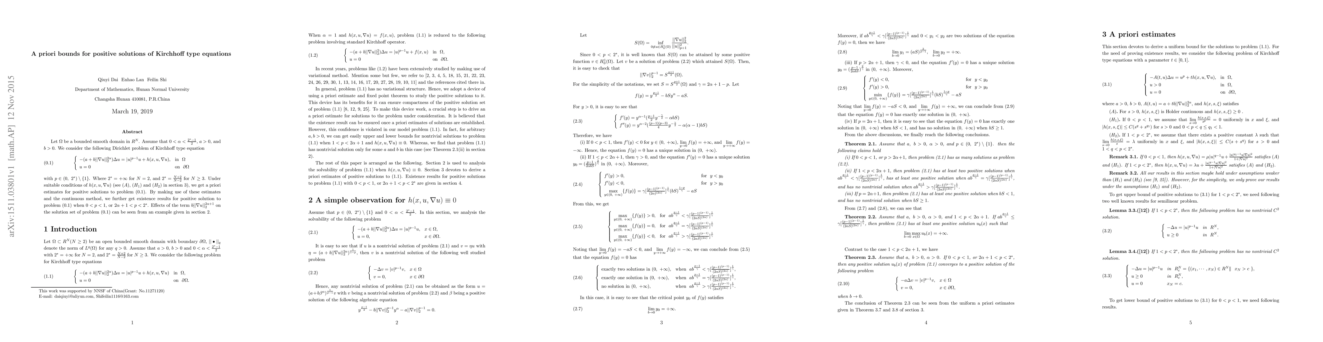 This paper establishes a priori bounds for positive solutions of Kirchhoff type equations, providing new insights into the existence and behavior of these solutions without relying on variational structure.