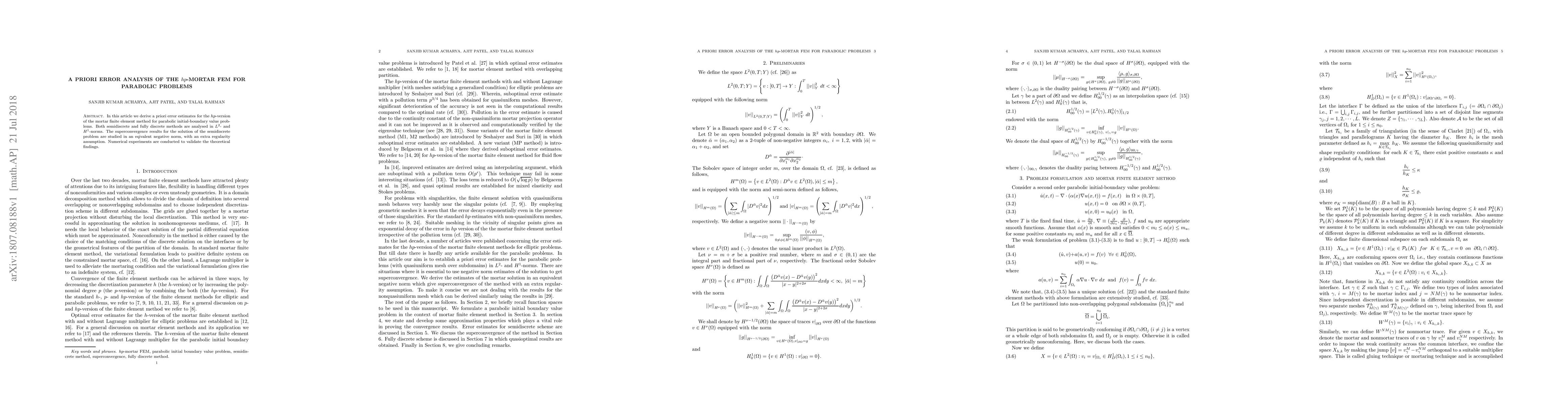 This paper derives a priori error estimates for the $hp$-mortar FEM applied to parabolic problems, analyzing both semidiscrete and fully discrete methods in $L^2$- and $H^1$-norms. Numerical experiments are conducted to validate the theoretical results, including superconvergence studies under an extra regularity assumption.