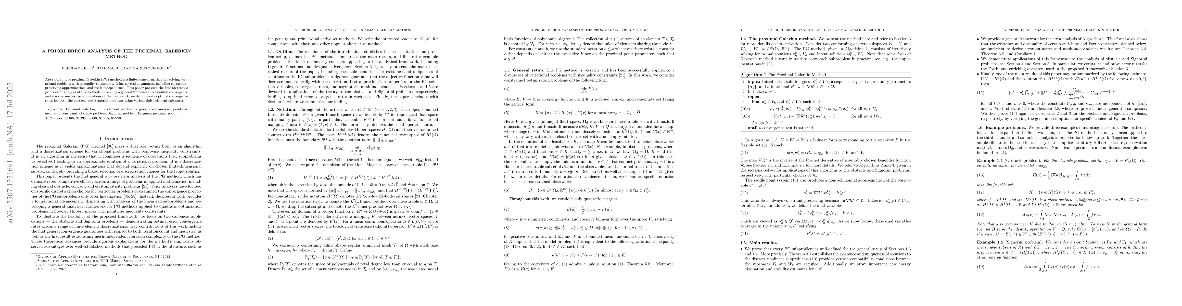 The proximal Galerkin (PG) method is a finite element method for solving variational problems with inequality constraints. It has several advantages, including constraint-preserving approximations and mesh independence. This paper presents the first abstract a priori error analysis of PG methods, providing a general framework to establish convergence and error estimates. As applications of the framework, we demonstrate optimal convergence rates for both the obstacle and Signorini problems using various finite element subspaces.