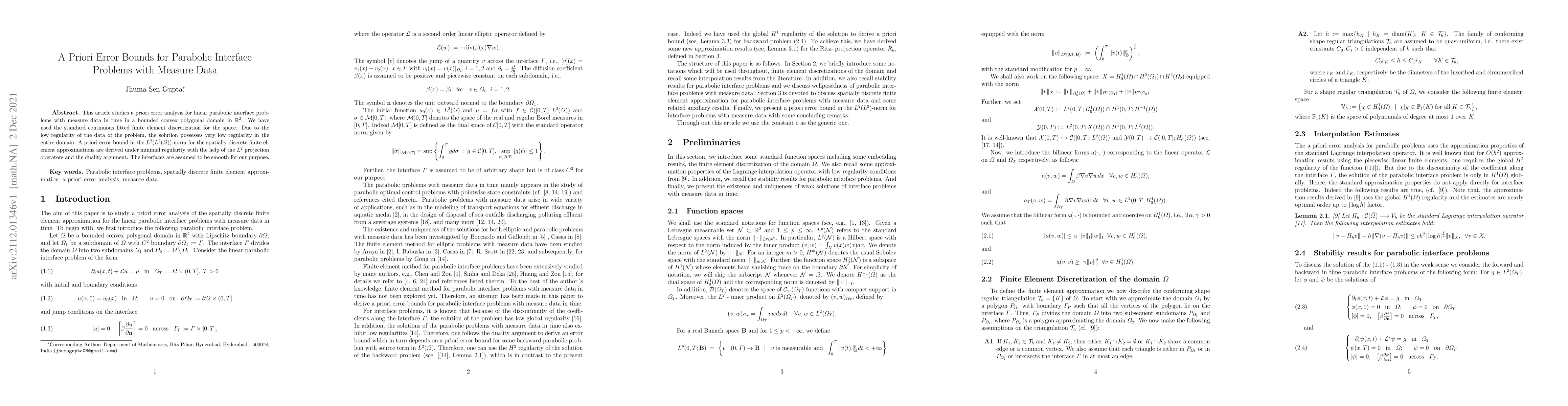 This paper provides a priori error analysis for linear parabolic interface problems with measure data in a bounded domain, using continuous fitted finite element methods. It derives $L^2(L^2(\Omega))$-norm error bounds under minimal data regularity, leveraging $L^2$ projection operators and duality arguments.