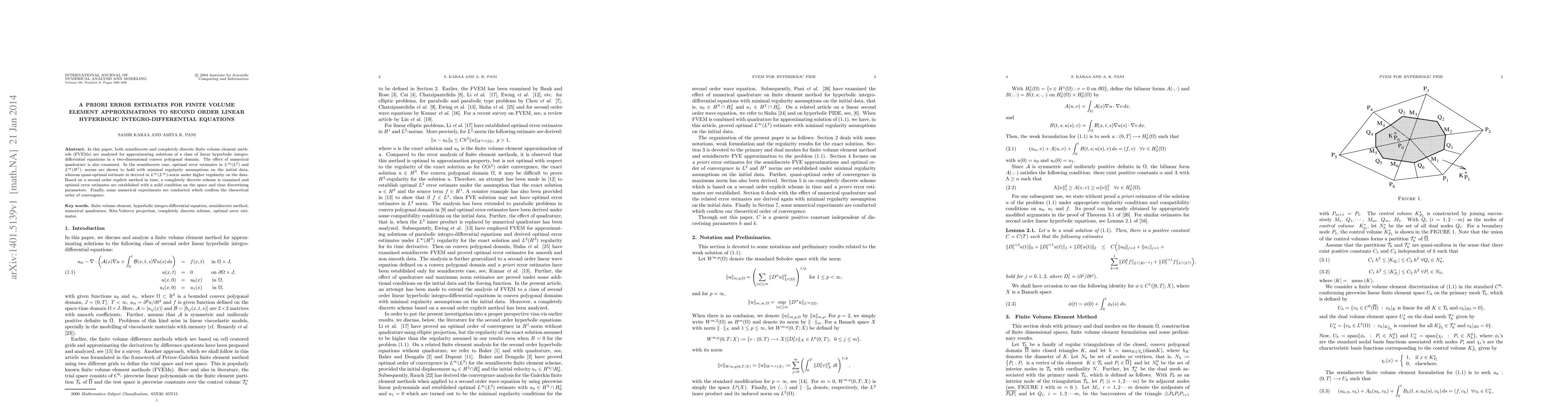 This paper analyzes semidiscrete and fully discrete finite volume element methods (FVEMs) for solving linear hyperbolic integro-differential equations in two-dimensional domains. It establishes optimal error estimates in various norms and examines the impact of numerical quadrature, confirming theoretical convergence through numerical experiments.