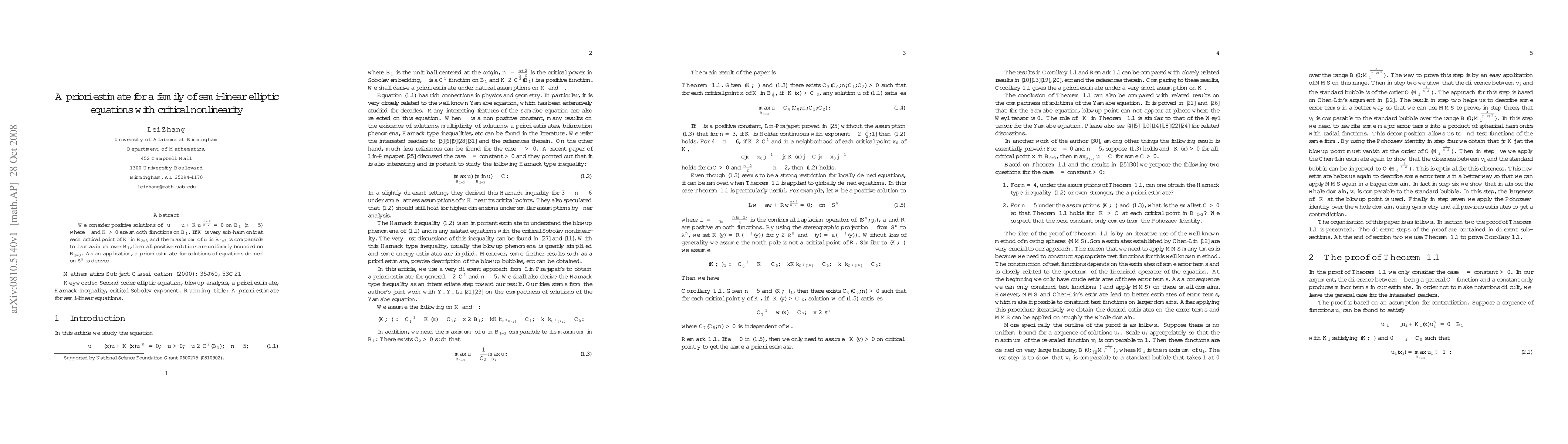 This paper provides an a priori estimate for solutions of semi-linear elliptic equations with critical nonlinearity on the unit ball, showing that positive solutions are uniformly bounded if certain conditions are met.