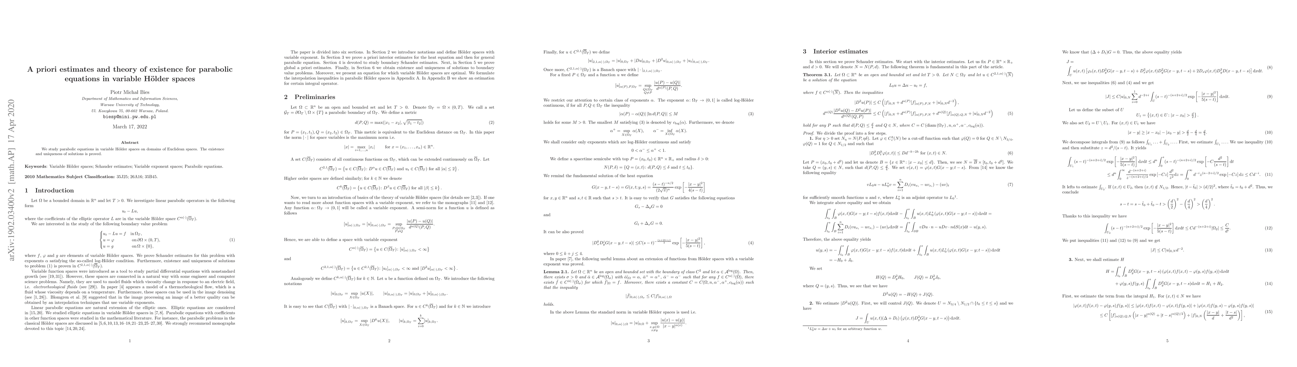 Summary: This paper establishes existence and uniqueness of solutions for parabolic equations defined in variable Hölder spaces, providing a priori estimates to support the theoretical framework.